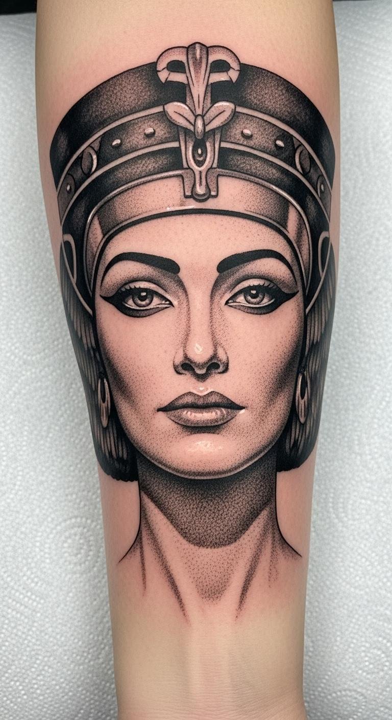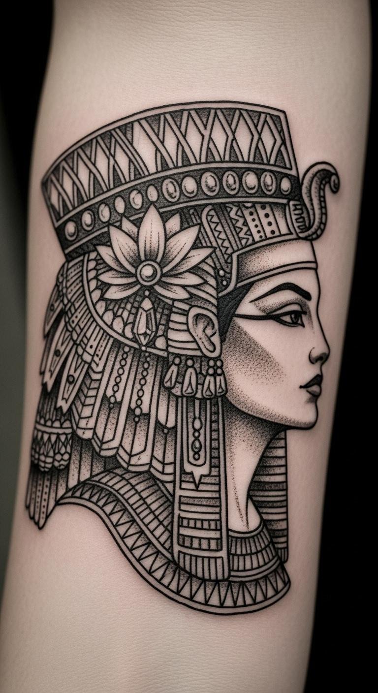 Think about a tattoo that brings Cleopatra’s face to life on your arm. This design uses bold lines and shading to show her strong features. Start with a simple sketch on paper to see how it looks. For budget tips, check free online templates or apps to design your own version. Visit local tattoo shops for quick consultations—they often share ideas at no cost. Keep it simple by choosing a small size to cut down on price. Real ink lasts, so pick a spot like your wrist for easy daily view. This approach lets you add personal touches without extra expense.