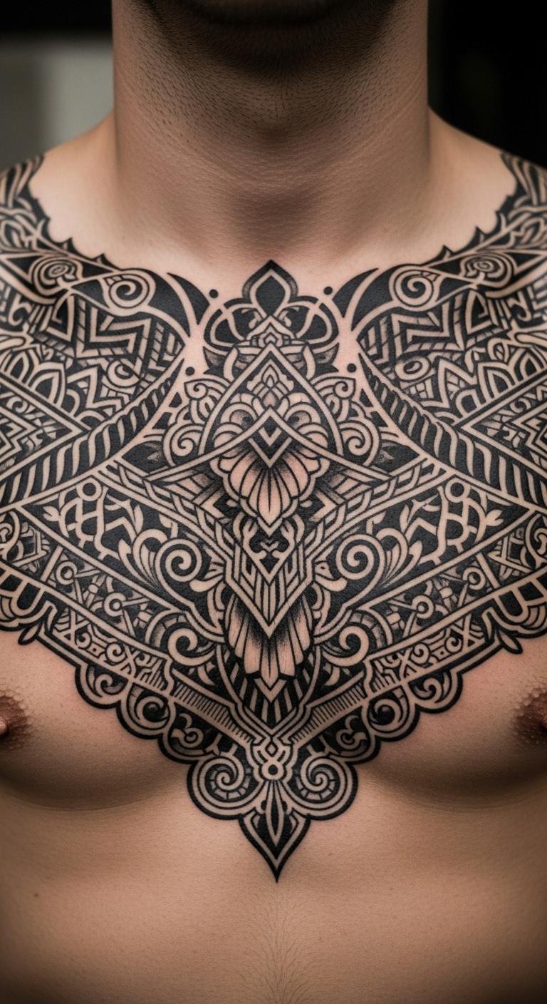 Blackwork hides tattoos boldly. Use dense lines for coverage. Start on your chest. Find deals at $150. Draw patterns yourself. It’s strong and simple.