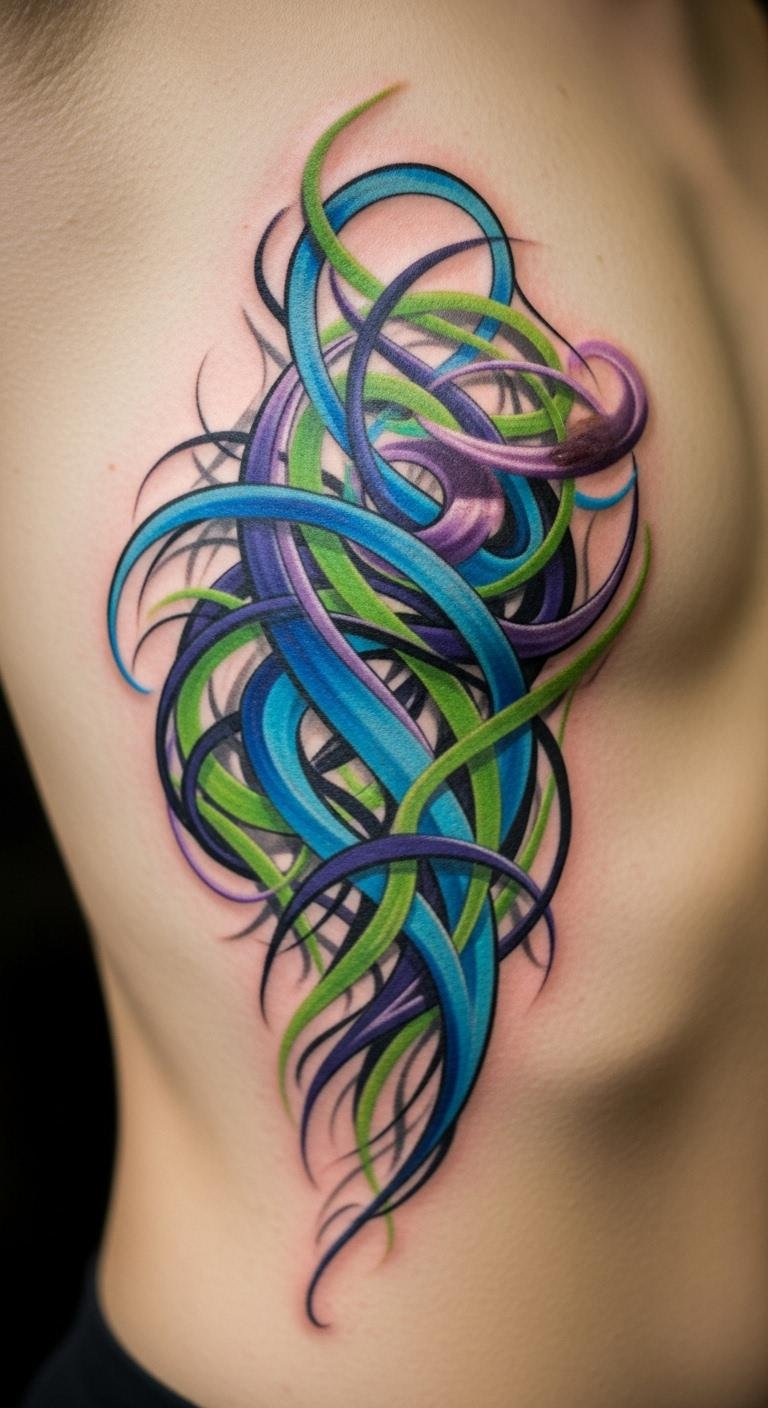 Abstract art covers freely. Swirl colors over regrets. Begin on your ribcage. Artists offer for $120. Doodle ideas first.