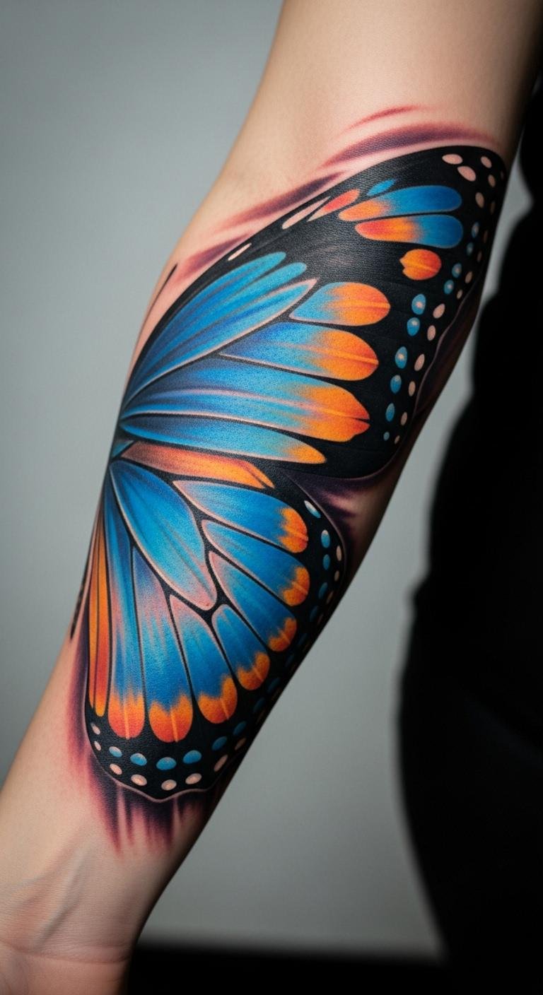Butterfly wings overlay tattoos transformationally. Add wings for change. Begin on arm. Costs around $130. Draw wings at home.
