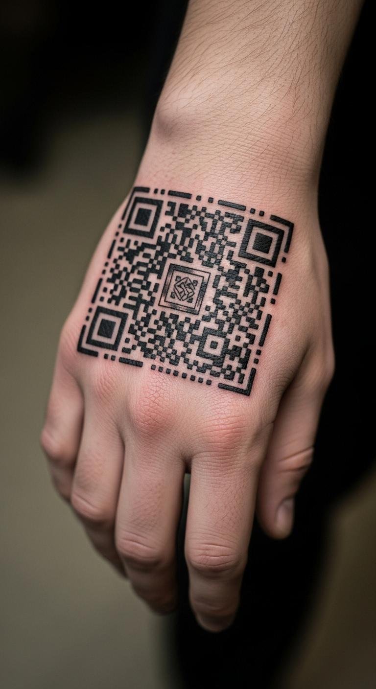 QR codes make cover-ups fun and modern. Turn that old tattoo into a scannable icon. Start with your hand for a small project. Artists might charge $150 for this. Draw a basic code on paper first. Scan mock-ups with your phone to test. This idea appeals to tech lovers. Choose simple shapes to keep it budget-friendly. It’s a creative way to mask the past.