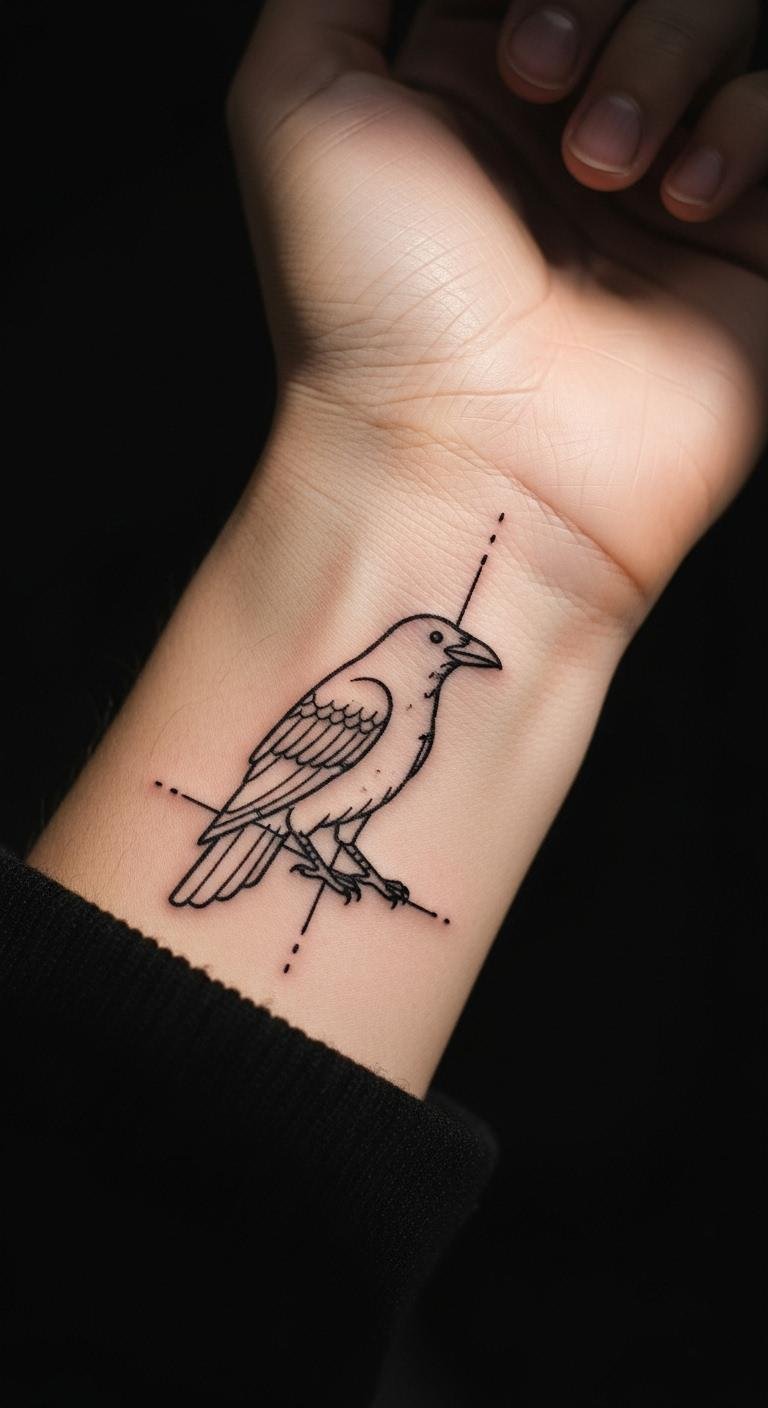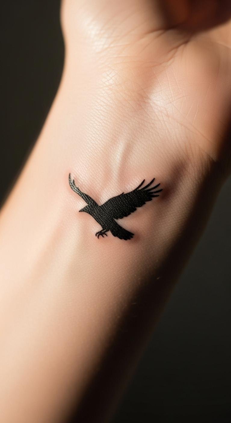Picture a sleek crow outline that fits everyday life. This design uses just a few bold lines to show a crow in flight. Start with a basic sketch on paper to plan it. For a budget option, use free online tattoo apps to tweak the shape before visiting a shop. Keep costs low by choosing a small size, like on your wrist. Break it down: draw the crow yourself with a pen, then snap a photo for reference. Add a personal twist, such as making the wings curve with your arm’s shape. This keeps things simple and meaningful. Focus on black ink only to avoid extra fees. Real talk: pair it with affordable aftercare like unscented lotion from your local store. You’ll end up with a tattoo that whispers your story without overwhelming your look.