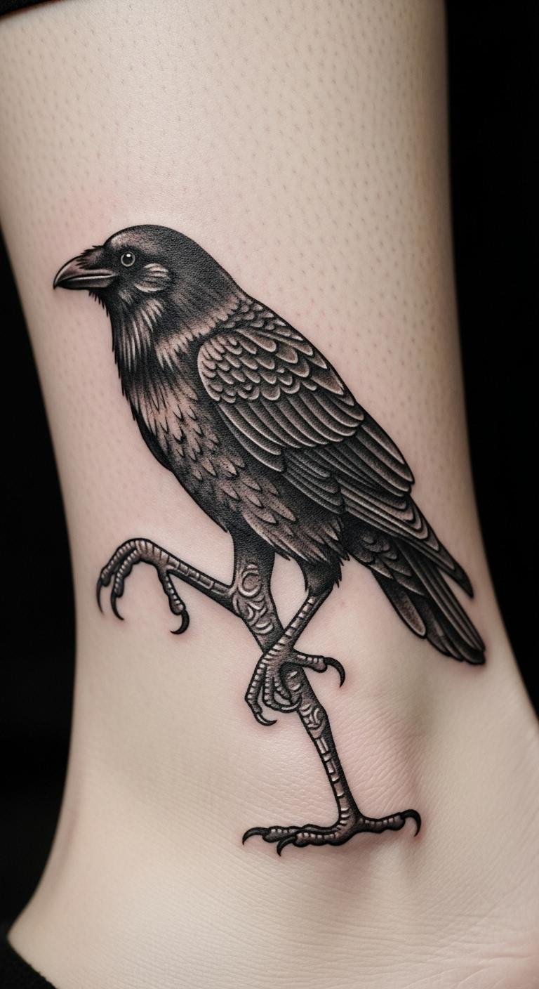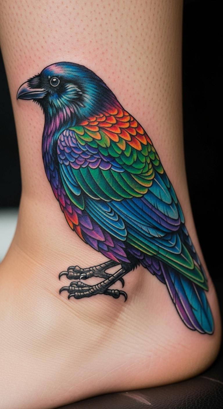 Envision a crow in bright colors for fun. This uses hues to liven it up. Pick colors from your wardrobe for inspiration. Save by choosing one accent color. Put it on your ankle for play. Real tip: test with markers. Add spots for personality. This brightens things affordably. Keep it lively. It’s enjoyable. Maintain with basic care.
