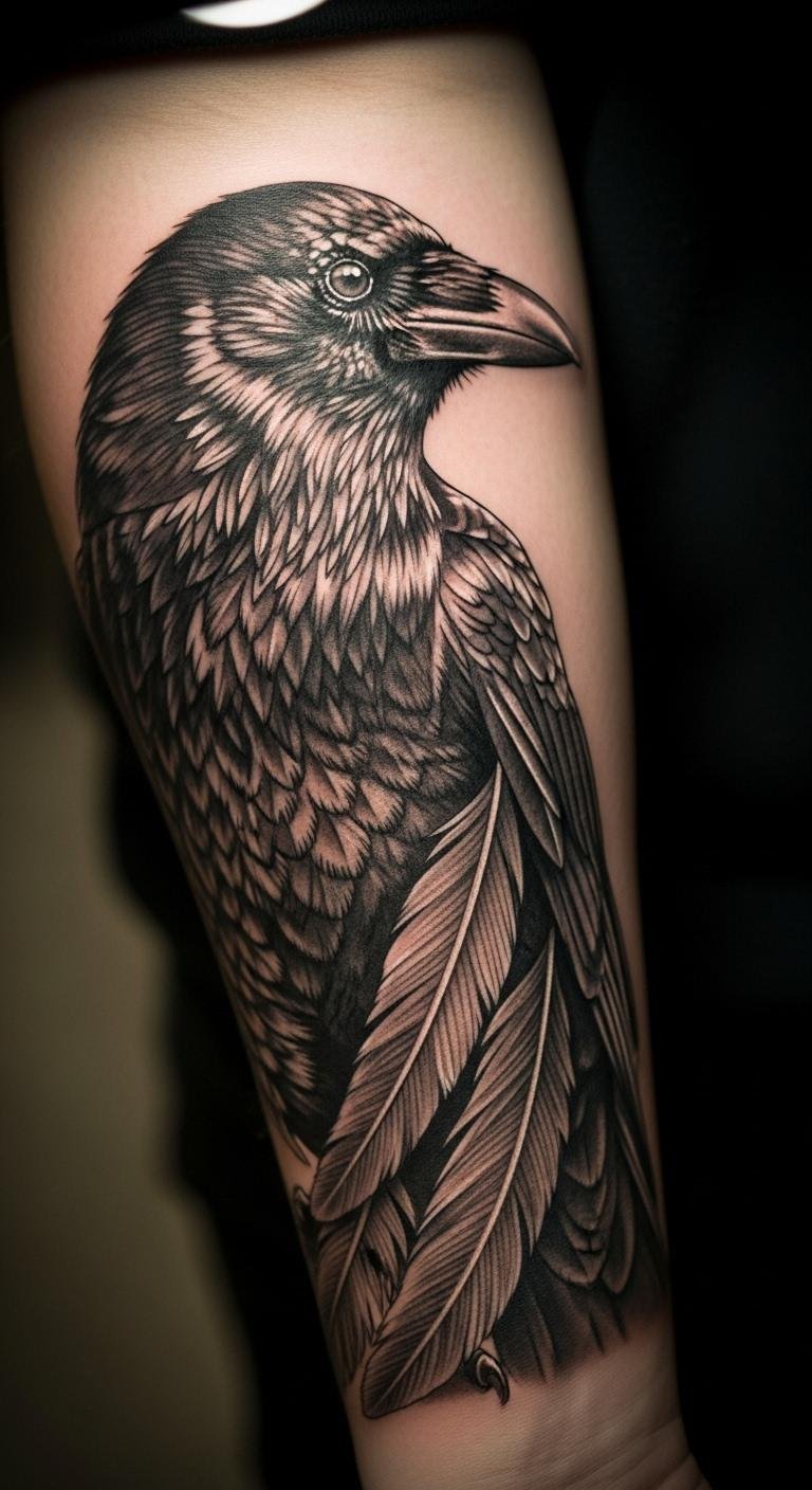 Envision a crow curving along your forearm. This idea uses the arm’s shape for flow. Measure your arm with string for fit. Save by picking a straight design. Real DIY: wrap paper around your arm to sketch. Make it follow your veins. This enhances daily wear affordably. Focus on alignment. It’s practical and cool. Use cheap salves for care.