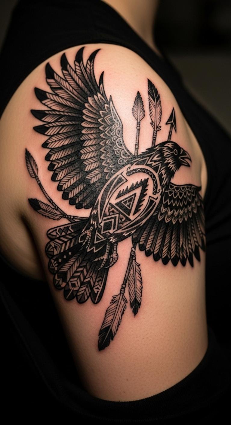 See a crow with tribal patterns for roots. This incorporates simple motifs. Study respectfully online. Stay budget-friendly with basics. Choose your shoulder. Real example: add arrows. This honors heritage economically. Focus on respect. It’s meaningful. Use everyday care.
