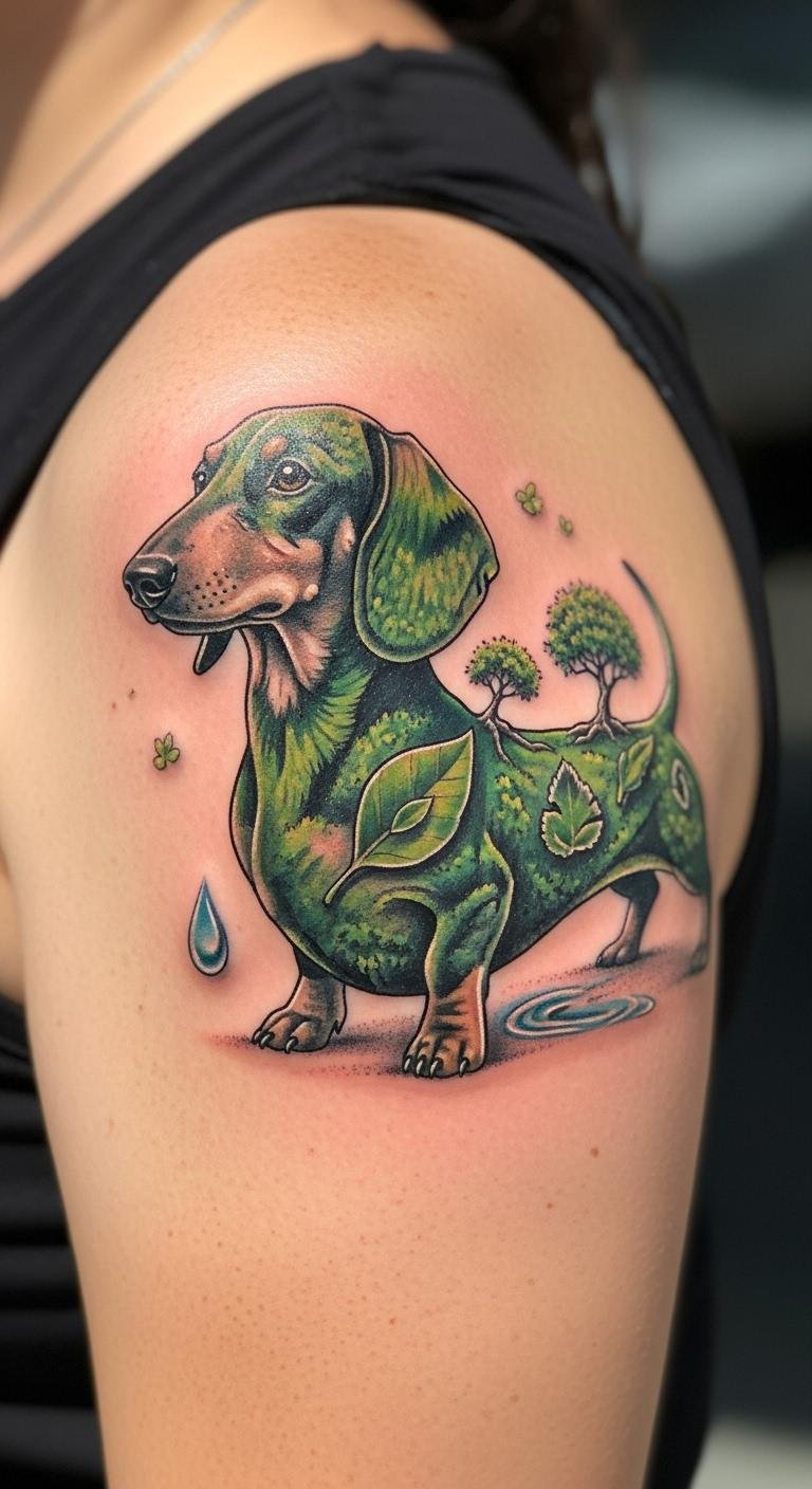 Green choices matter now. An eco dachshund uses safe inks. Research brands online. Put it on shoulder. Around $160. Ask for vegan options. Keep it thematic. Heal with plant-based aids. This feels good. Find eco artists.