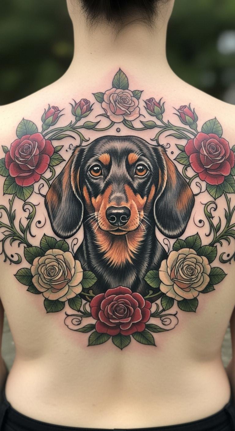 Flowers make it romantic and fresh. A dachshund with blooms adds nature’s touch. Practice drawing on paper first. Put it on your back for a surprise element. Costs can be $100 to $300. Pick local wildflowers for inspiration. Combine with your pet’s name. Chat with artists about simple additions. Heal it with aloe vera. This idea works for dates. Save by choosing smaller sizes. Your tattoo tells a sweet story.