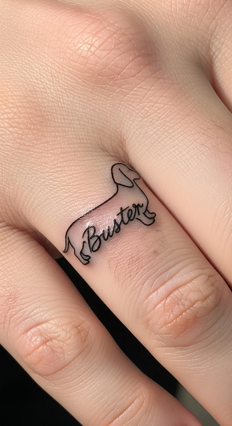 Make it yours with a name twist. A dachshund plus text honors your pet. Jot ideas in a notebook. Try a finger for discreet wear. Prices hover around $80. Use free fonts online for drafts. Add paw prints easily. Ask for quick sessions. Cover with bandages at first. This keeps memories alive. Budget by going monochrome. Share your design online.