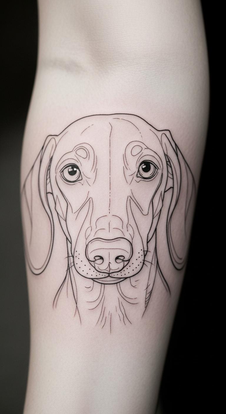 Thin lines offer clean elegance. A dachshund portrait captures every detail. Draw references yourself. Choose a forearm for visibility. Costs start at $120. Select quality needles. Add minor tweaks. Plan for one appointment. Protect from sun. This style looks sharp. Save by picking locals.