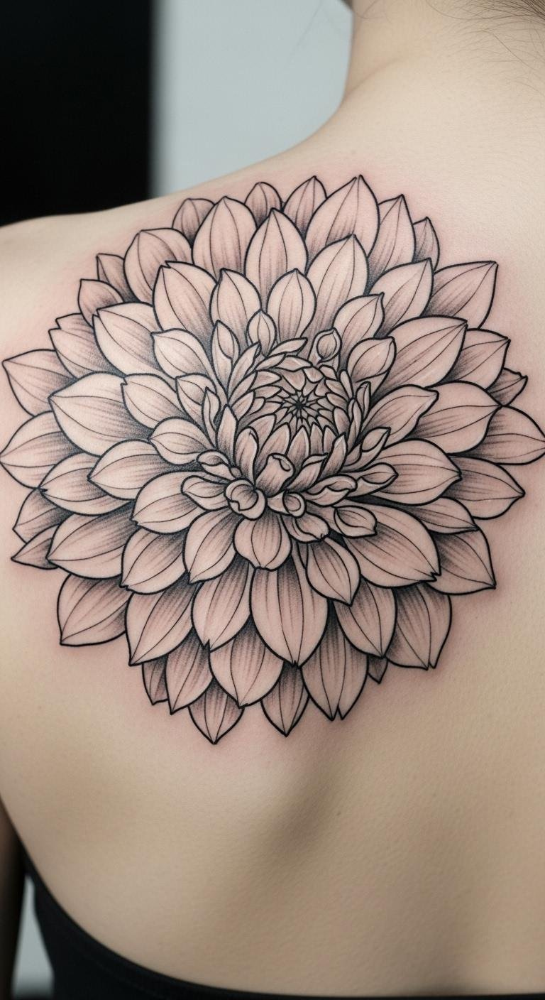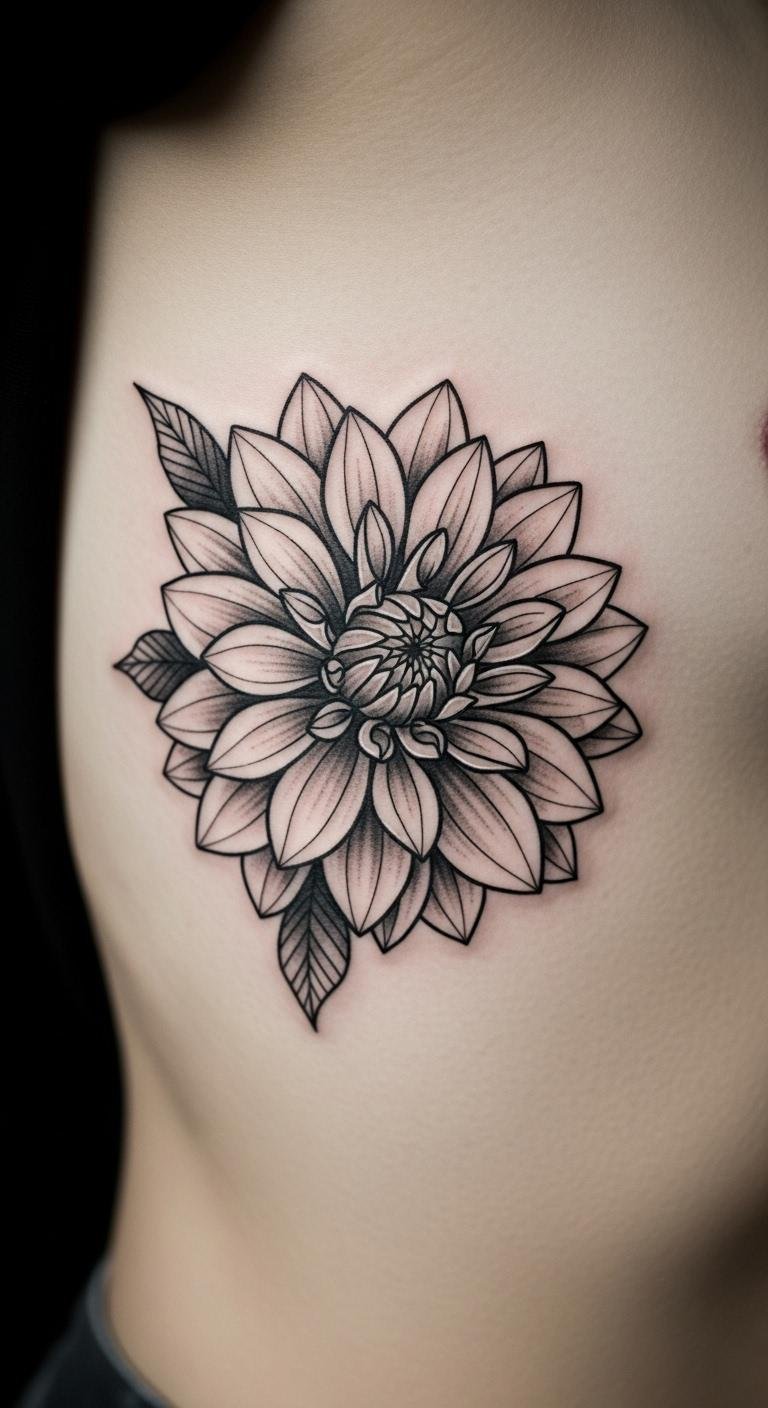 A classic dahlia tattoo keeps things simple yet striking. Think of a large flower with bold lines and shading. This design works for anyone wanting a nod to tradition. Start by sketching ideas on paper with a basic pen. It costs less than $100 for a small one from a local artist. Look for affordable studios online. Pair it with other elements like leaves for added flair. Keep your skin moisturized after. This style suits any spot, like your wrist. Go for black ink to save on color fees. Try drawing it yourself first to tweak details. You’ll feel confident picking the final version.