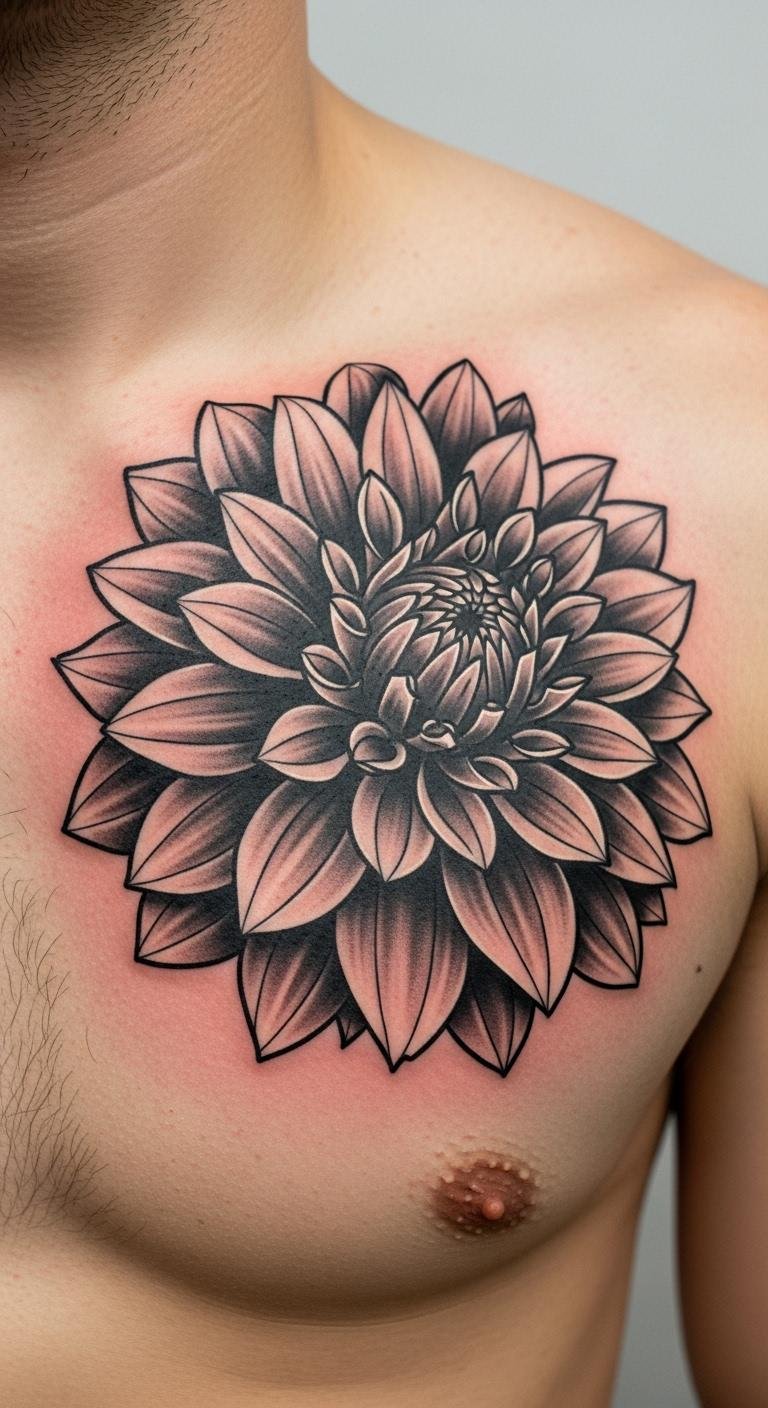 Dahlia tattoos for men break norms with strength. Bold lines work well. Sketch masculine versions. Prices at $90. Place on your chest. Include edgy elements. Find male-friendly shops. This design empowers. Draw bold ideas. You’ll feel proud.