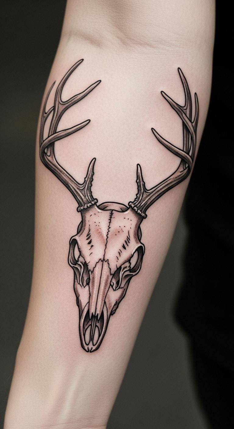 Antlers on a deer skull highlight growth and change. They stand for new beginnings. Sketch branching lines on paper first; it’s quick and free. Apps make editing simple. Opt for an artist charging $90 for this focus. Antlers mean regeneration, a key draw. Use twigs from your yard to trace shapes; no extra spend. Place it on your arm for visibility. Add just a few branches to keep it light. This approach is practical. Snap pictures of real antlers for reference. It helps build your idea easily.