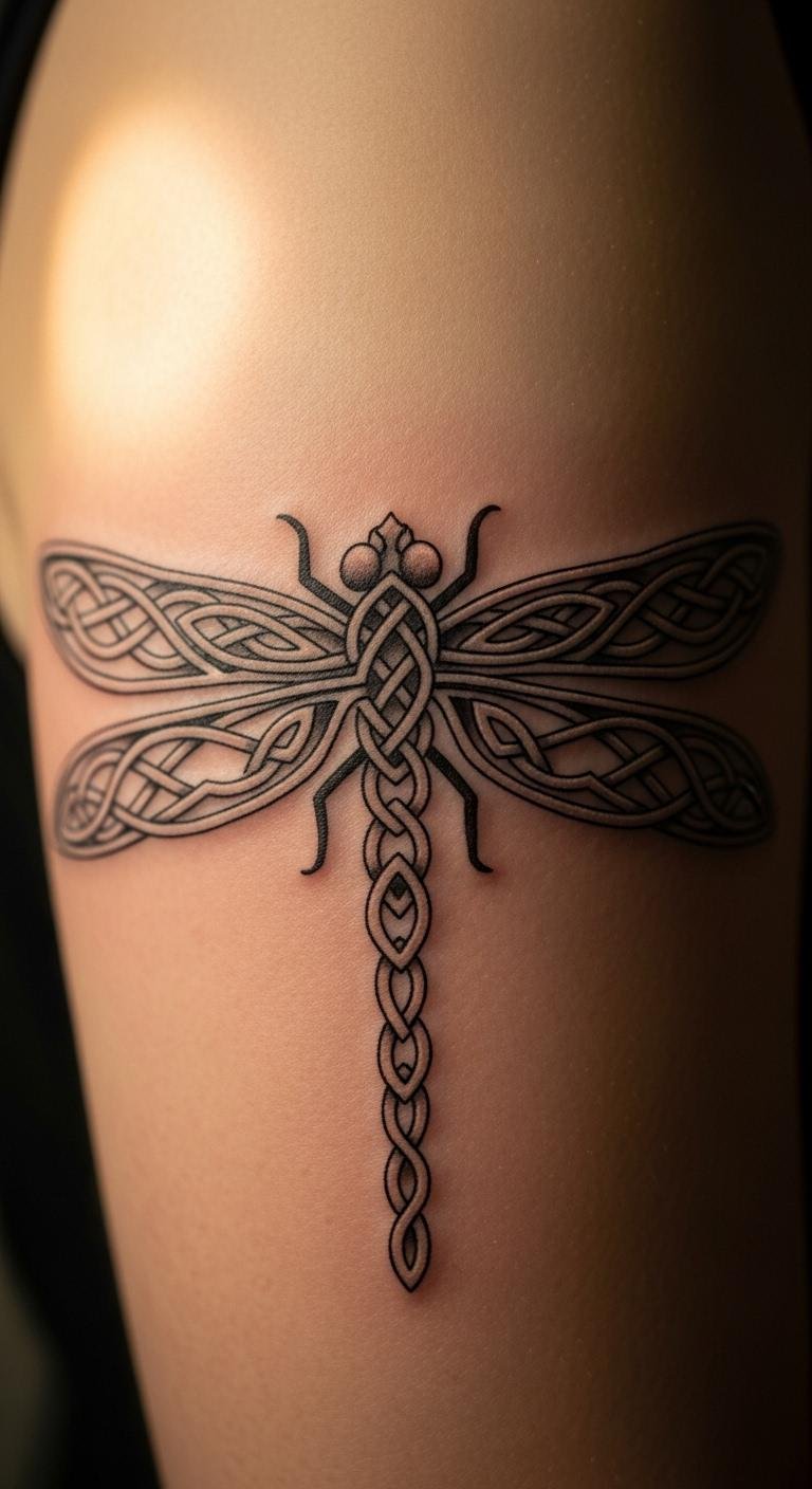 A Celtic knot dragonfly weaves culture into ink. Think of knots in the wings on your chest. This style stands for insight and ties. Draw knots with string at your table. Access free Celtic guides on the web. Look for artists skilled in knots at lower rates. Personalize with family symbols inside. Practice basic knots with cheap materials. This design appeals to heritage seekers. Select a spot that holds personal value. Go for phased sessions to manage costs.
