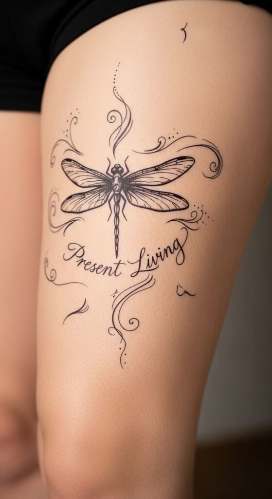 17. Thigh Tattoo for Present Living