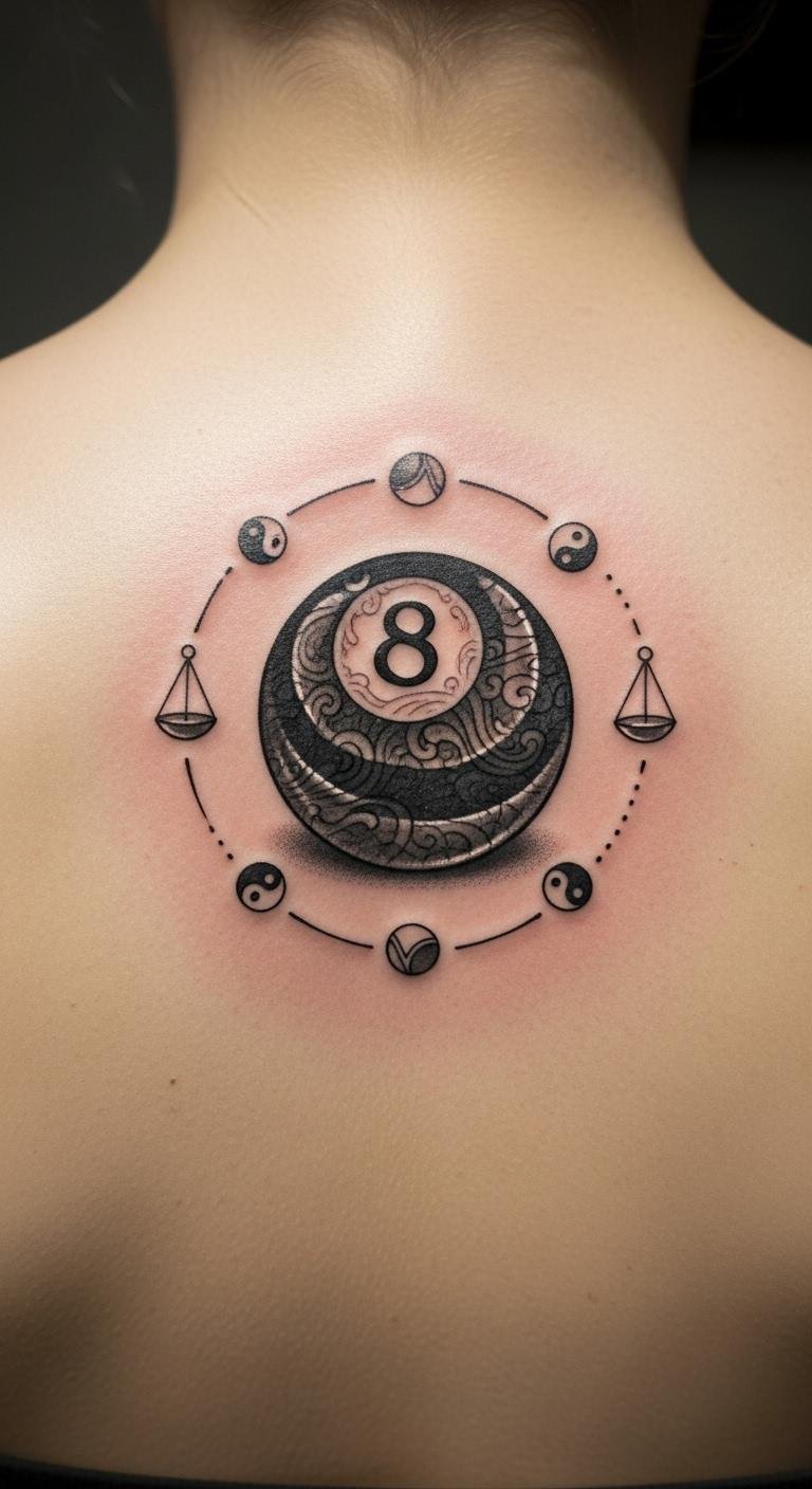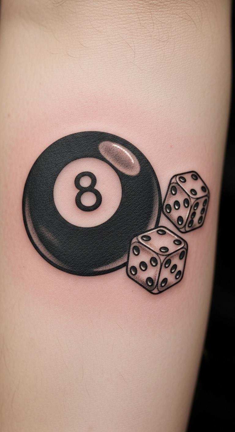 Pair your eight ball with dice for that risk-taker feel. It amps up the fun of chance in one spot. Draw a rough version at home using pen and paper. Mix in symbols that matter to you, like your lucky number on the dice. Save cash by choosing a smaller size—less ink means less expense. Look for artists who offer package deals for multiple elements. Practice with temporary tattoos from the store to preview it. This combo makes a bold statement without breaking the bank. Get creative and add it to visible spots for daily impact.