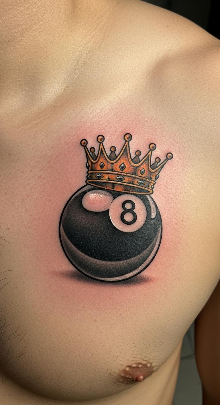 Make your eight ball stand for a win, like finishing a goal. Add a small crown or flag nearby. Use paper and markers for initial designs. Go with basic ink to save money. Check local shops for deals. Test with wash-off tattoos. This tattoo celebrates your achievements affordably. Personalize it quickly and easily.