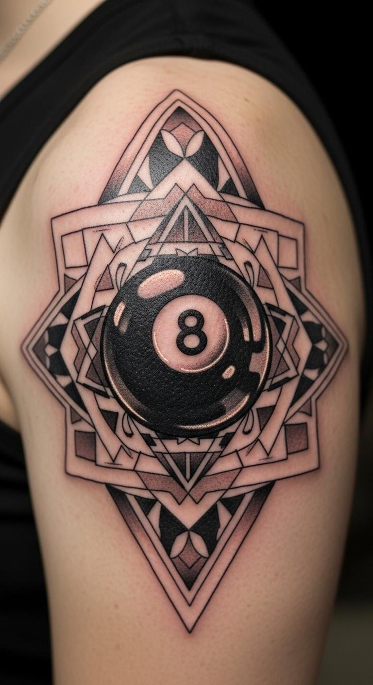 Surround your eight ball with geometric patterns. It adds modern flair. Design on a tablet for free. Keep it small to save money. Look for group session discounts. Try drawing it first. This combination stands out affordably.