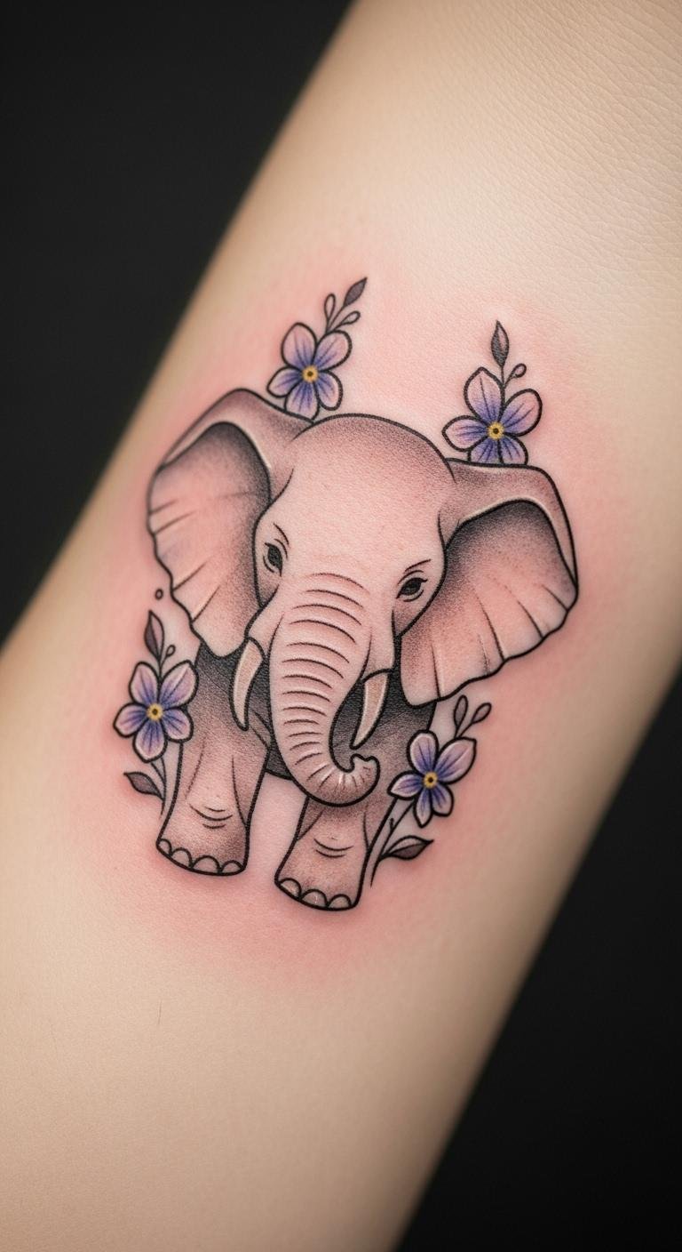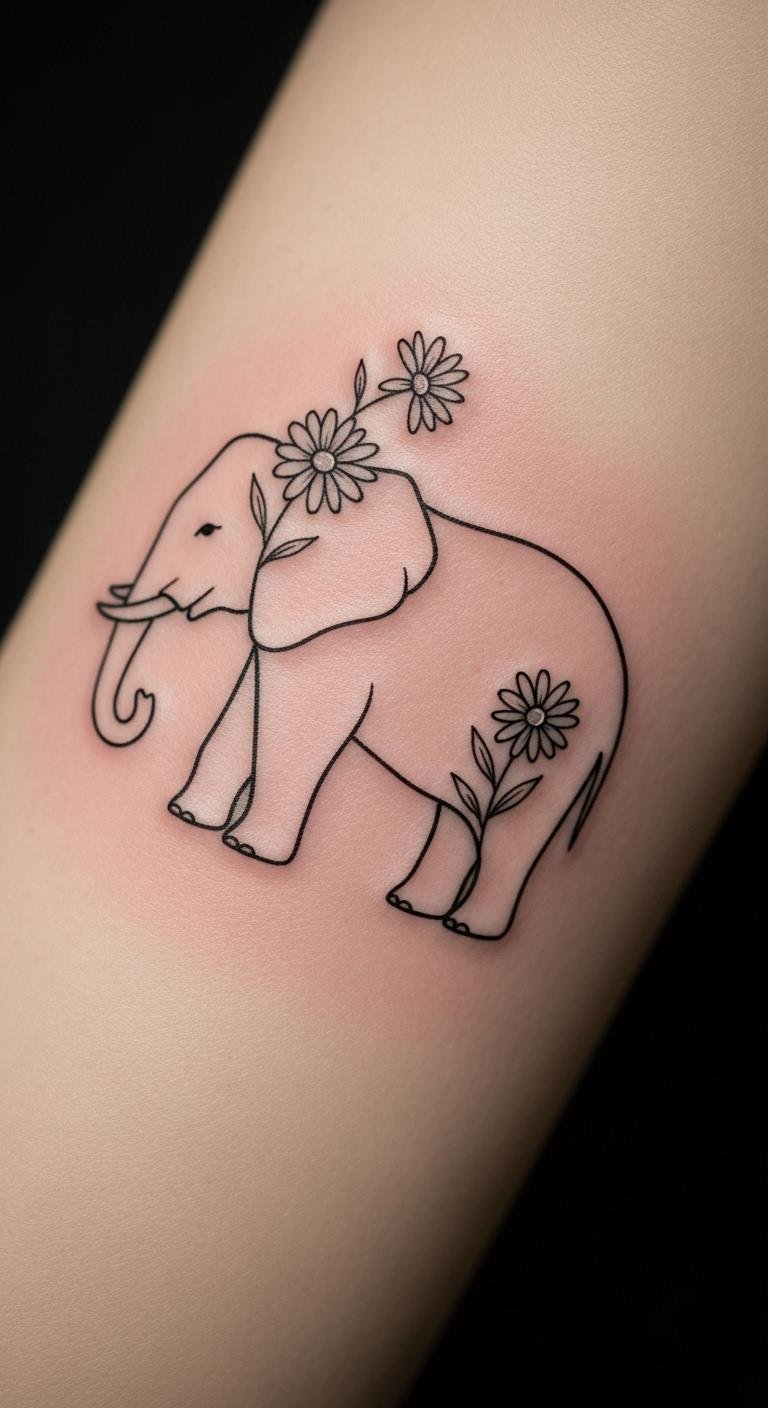 Minimalist tattoos keep it clean with an elephant and a few daisies. This means less ink and more impact. Sketch ideas on plain paper quickly. Find free minimalist templates online. Look for beginner artists at low-cost studios. Daisies add a touch of innocence to your story. Bold this: daisies mean simplicity. Try drawing with everyday pens first. Choose spots like wrists for quick, cheap sessions. Make it your own without extra fuss.