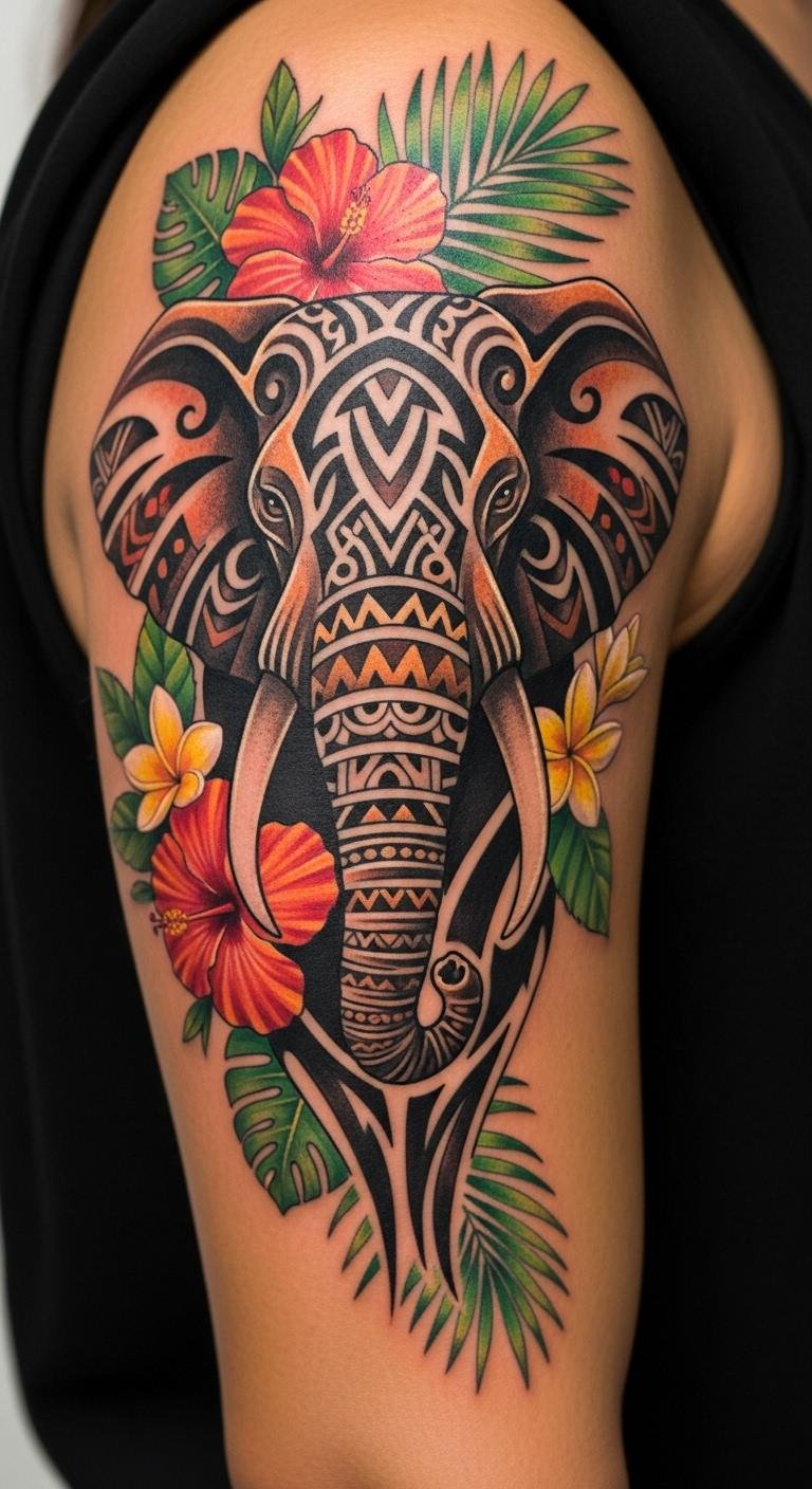 10. Tribal Elephant with Tropical Blooms
