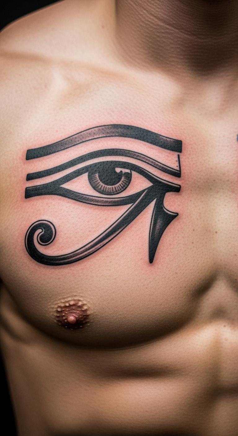 Go for a larger Eye of Horus on your chest to feel grounded. This area puts the symbol close to your heart for a confidence surge. Draw it out on a mirror with washable markers to see how it flows. Grab affordable transfer paper online to mock it up. Opt for one color to save on ink costs. A local shop might offer deals for first-timers. Combine it with a simple shape for extra meaning. Wear it under a shirt for private motivation. Make it easy: Use body paint from a craft store to practice at home. This design helps you face challenges head-on.