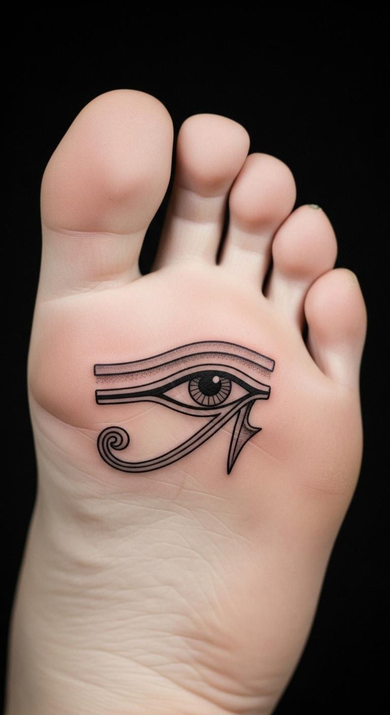 Place the Eye of Horus on your foot sole to walk with confidence. This area grounds the symbol in your path. Draw on your foot with pen. Try foot decals from stores. Use tough ink for longevity. Look for foot deals at shops. Customize with a step motif. It supports every step. Simple test: Use shoe insoles with designs. This tattoo keeps you steady.