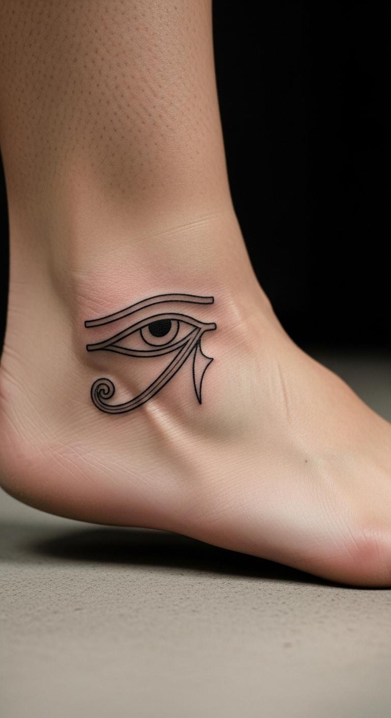 Place the Eye of Horus on your ankle to stay rooted. This spot links the symbol to your steps for steady confidence. Trace it on your leg with a pen to test. Use ankle bands with temporary designs from a store. Opt for simple outlines to save money. Find deals at walk-in shops in your area. Include a wave for personal meaning. It boosts you during walks or runs. Do it yourself: Draw on socks with fabric markers first. This tattoo keeps you balanced through the day.