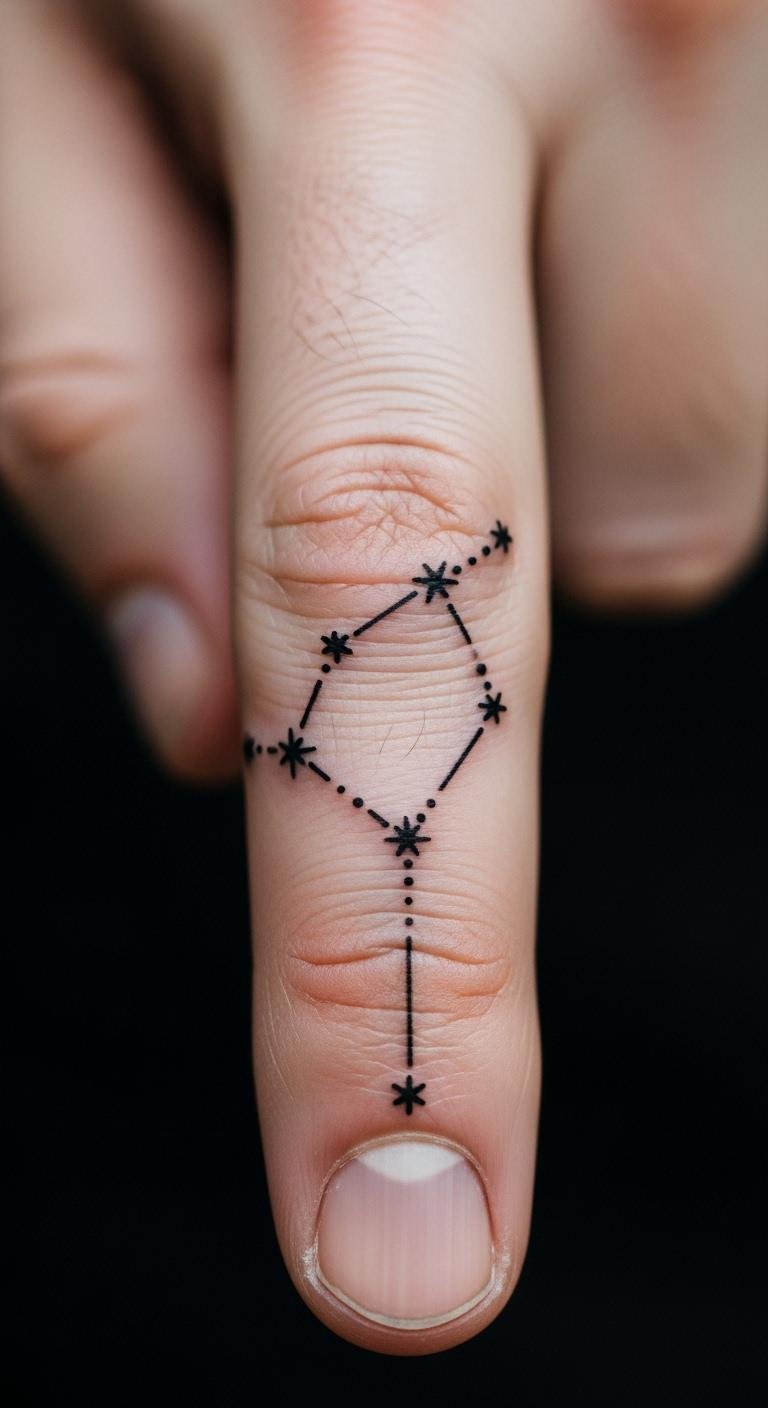 Star constellation tattoos on fingers map your story. Connect dots for a personal sky. Use star apps to design for free. A tattoo might cost $40. Expose to air for healing. Link to real constellations. Practice with markers. This ink guides your path.
