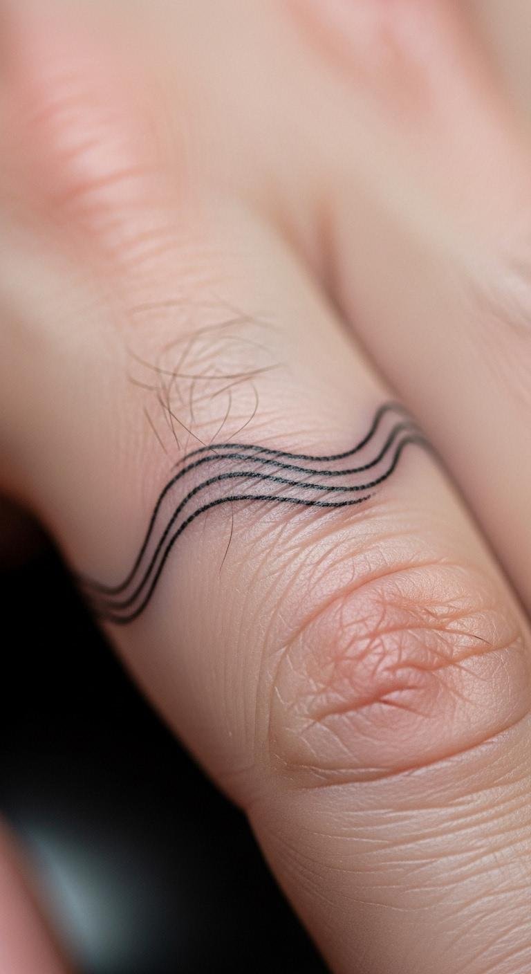 Subtle linework on fingers offers elegance. Create wavy or straight lines. Sketch patterns. Free line tools online. Tattoo for $35. Moisturize daily. Layer designs. Use markers for trials. This style enhances subtlety.