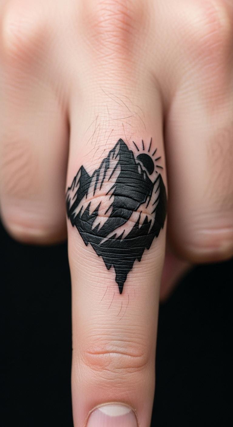 Bold silhouettes on fingers make strong images. Choose a mountain or icon. Plan with outlines. Free silhouette resources help. Expect $45. Protect from sun. Add colors if wanted. Test with ink pens. It defines your edge.