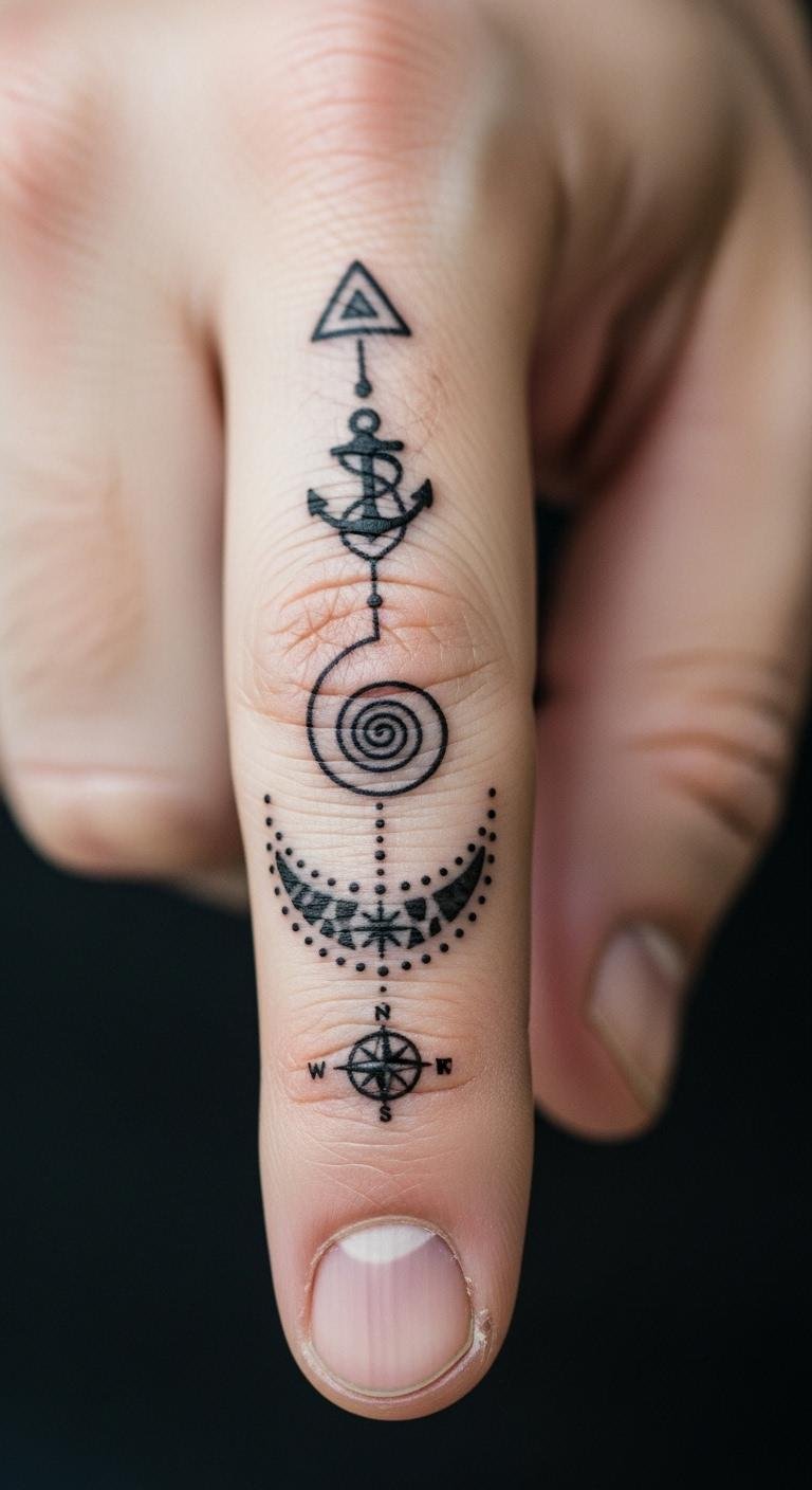 Mixed motif tattoos on fingers combine elements. Blend shapes and icons. Plan combinations. Free motif tools help. Expect $50. Protect the area. Customize further. Try with art supplies. This design tells your story.