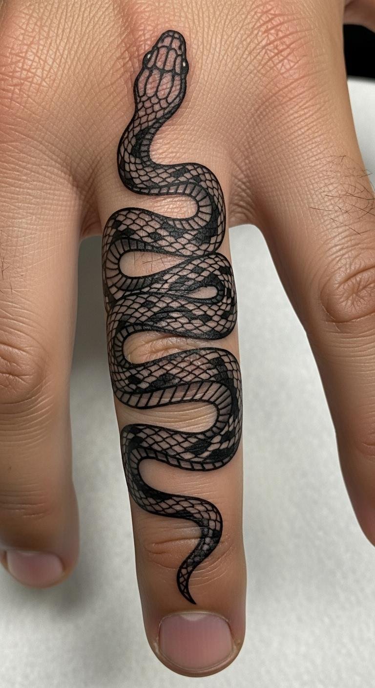 7. Symbolic Snake Finger Tattoos