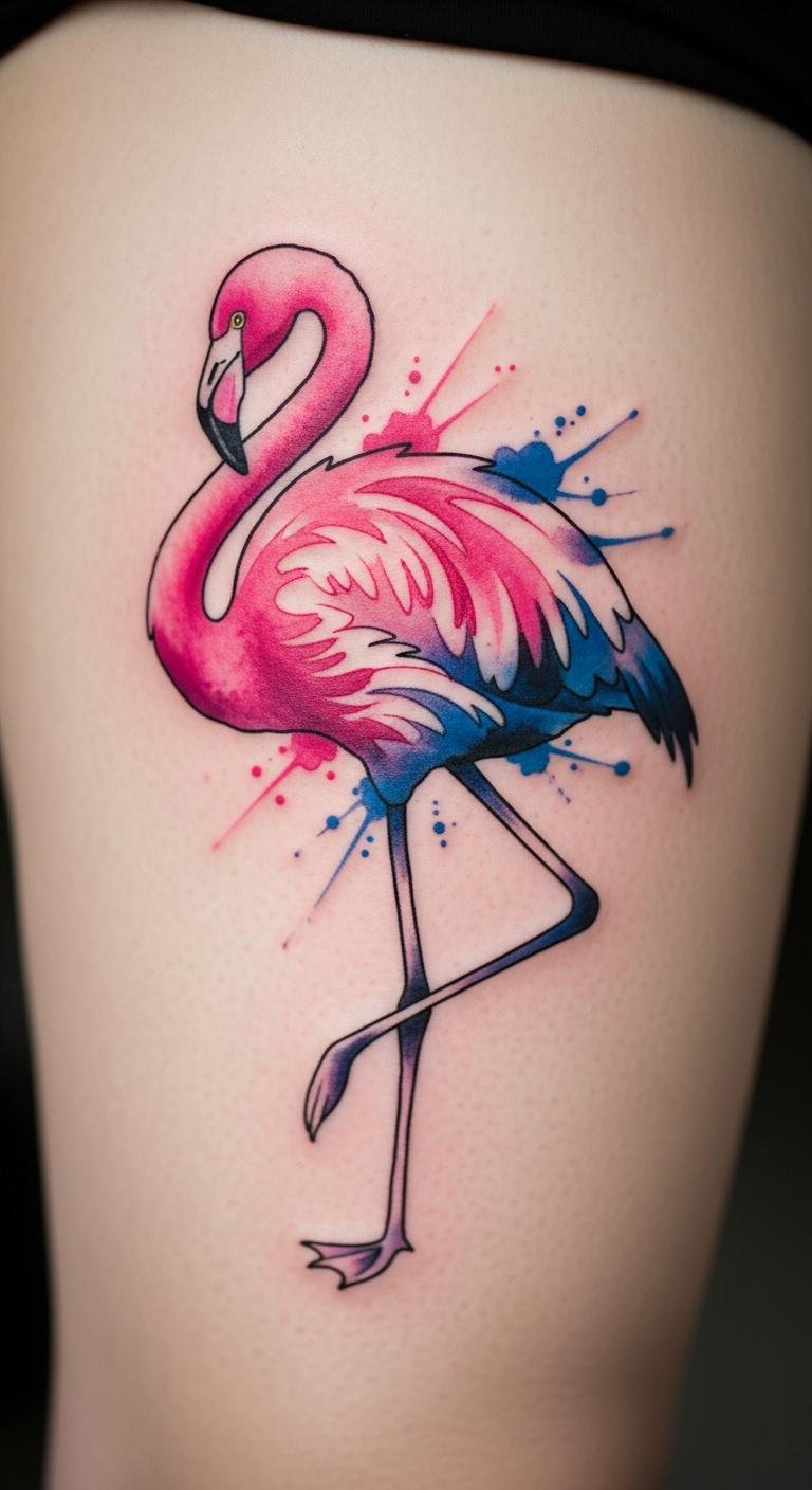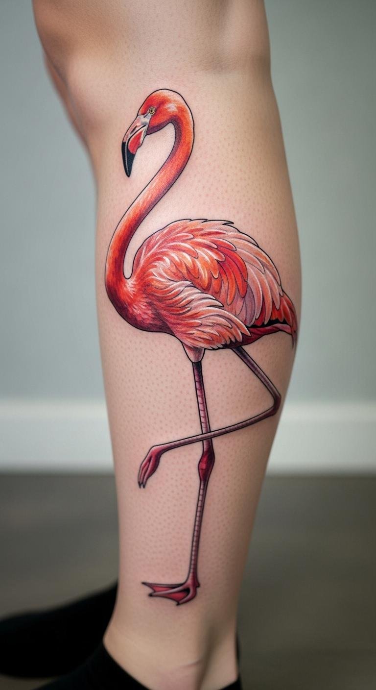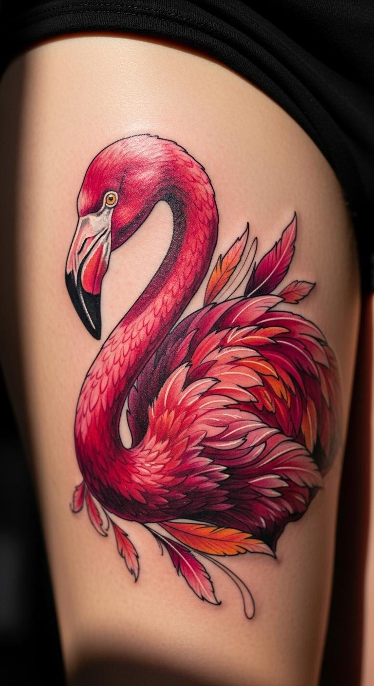 Your thigh lets a flamingo spread out in detail. It’s a private yet powerful spot. Sketch on fabric to preview. Free software helps scale it. A thigh design might run $300. Place it high for personal meaning. Try temporary tattoos first. This area boosts confidence in outfits. Add elements from your hobbies.