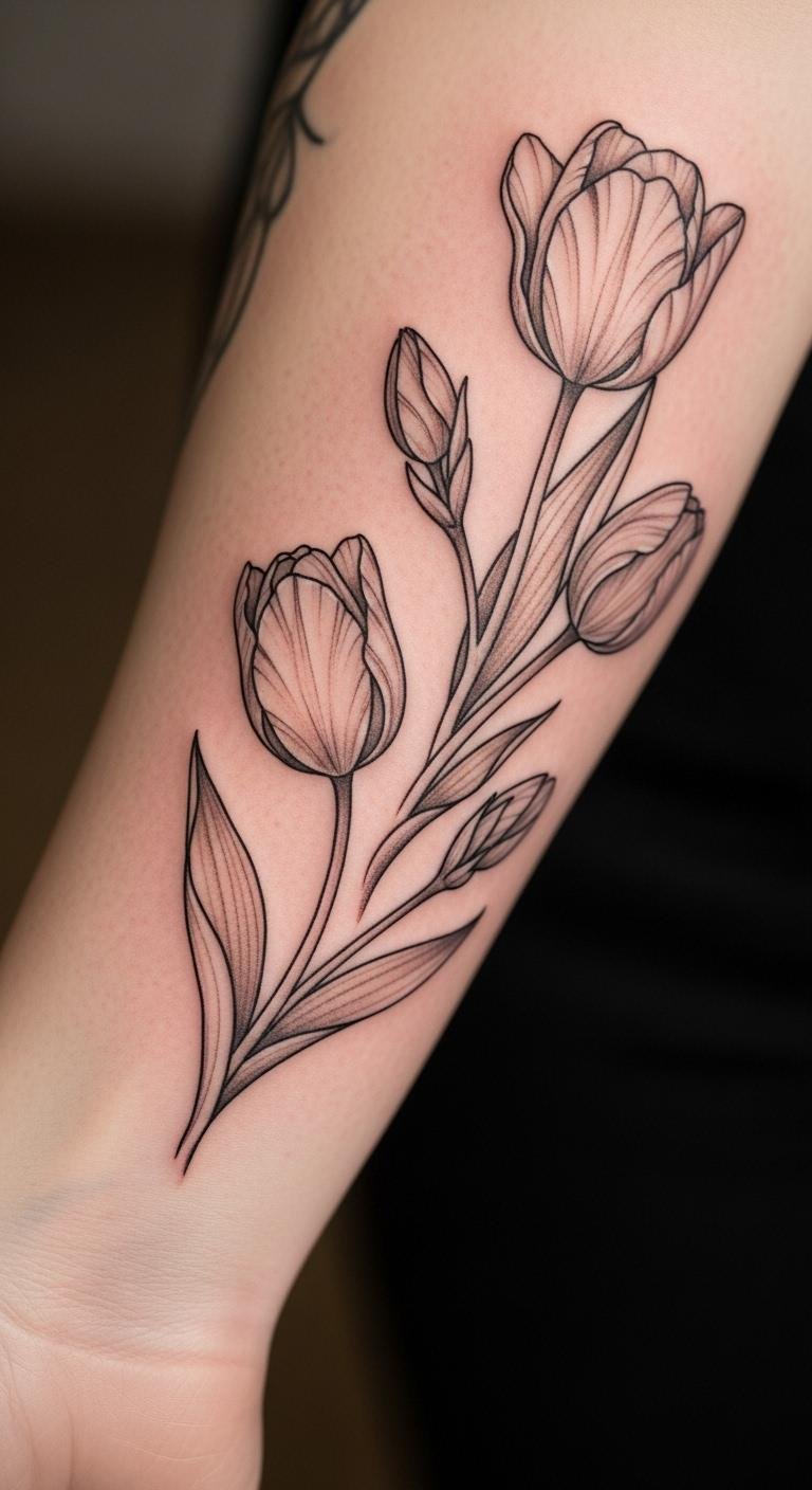 Start a sleeve with simple tulips. Build it over time if you want. Find tulip designs online without paying. Sketch the layout on your arm with a pen. Apply removable stickers for a preview. Begin small to keep costs down. Align tulips along the forearm length. This idea grows with you. Add more elements later. It offers flexibility and fun.