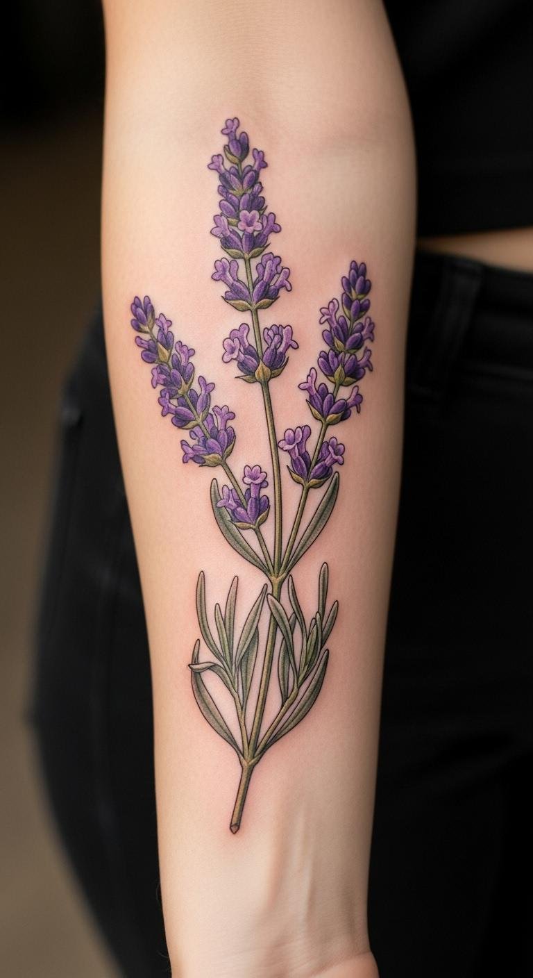 Make a lavender sprig look true to life. Focus on the leaves and stems. Study real lavender photos online. Draw it in detail at home. Use a fake transfer for testing. Choose a small sprig for affordability. Place it lower on the forearm. This design is calming and real. Tailor the length to suit. It brings peace to your skin.