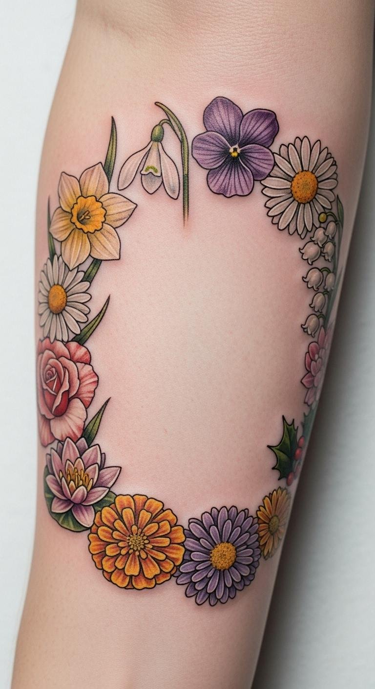 Wrap your forearm with flowers tied to your birth month. It’s a neat way to celebrate roots. Research your flower online for free ideas. Practice with temporary tattoos from the dollar store to test fit. Draw it out with markers at home for a DIY preview. Keep the design slim to stay budget-friendly. Position it as a band for a balanced look. This adds meaning without extra flair. Tailor it to your story for uniqueness. The final tattoo feels special and easy.