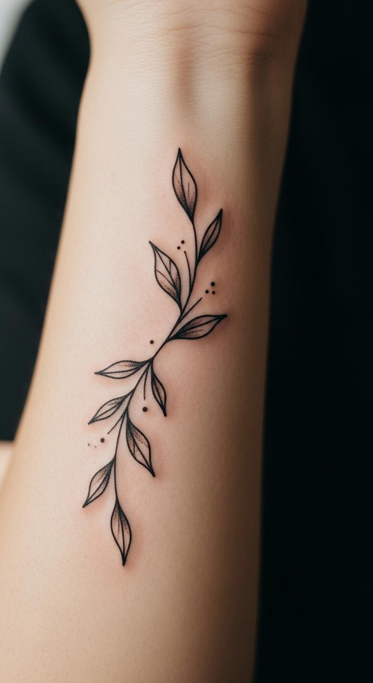 Trace a leafy vine with minimal lines. It’s graceful and green-inspired. Search vine ideas online. Draw it freehand at home. Use a vine sticker for test. Keep lines sparse. Weave it up the forearm. This design grows on you. Add leaves that matter. It feels natural and light.