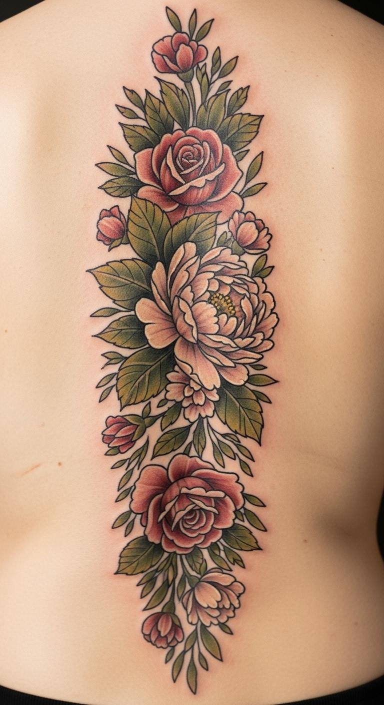 Cultural symbols use meaningful flowers on your spine. Think lotus for peace in a line. This adds personal depth. Artists charge $140. Research symbols online. Apply safe lotions. Pair with a cultural piece. Draw from stories. Focus on meaning. It’s a thoughtful choice.