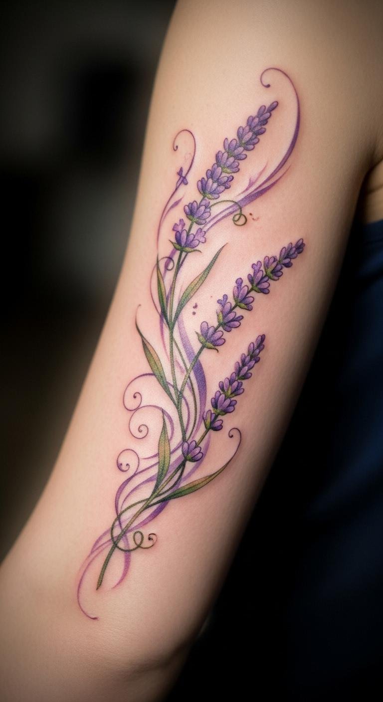 A romantic vine with lavender brings devotion to your arm. It soothes like a scent. Use lavender for calm. Plan with free scent-inspired apps. For low-cost ideas, draw with colored pencils. Let vines weave gently. This design is about $90. Bold the lavender stems. Use yarn to trace paths. This idea adds romance easily. It’s calming and sweet.