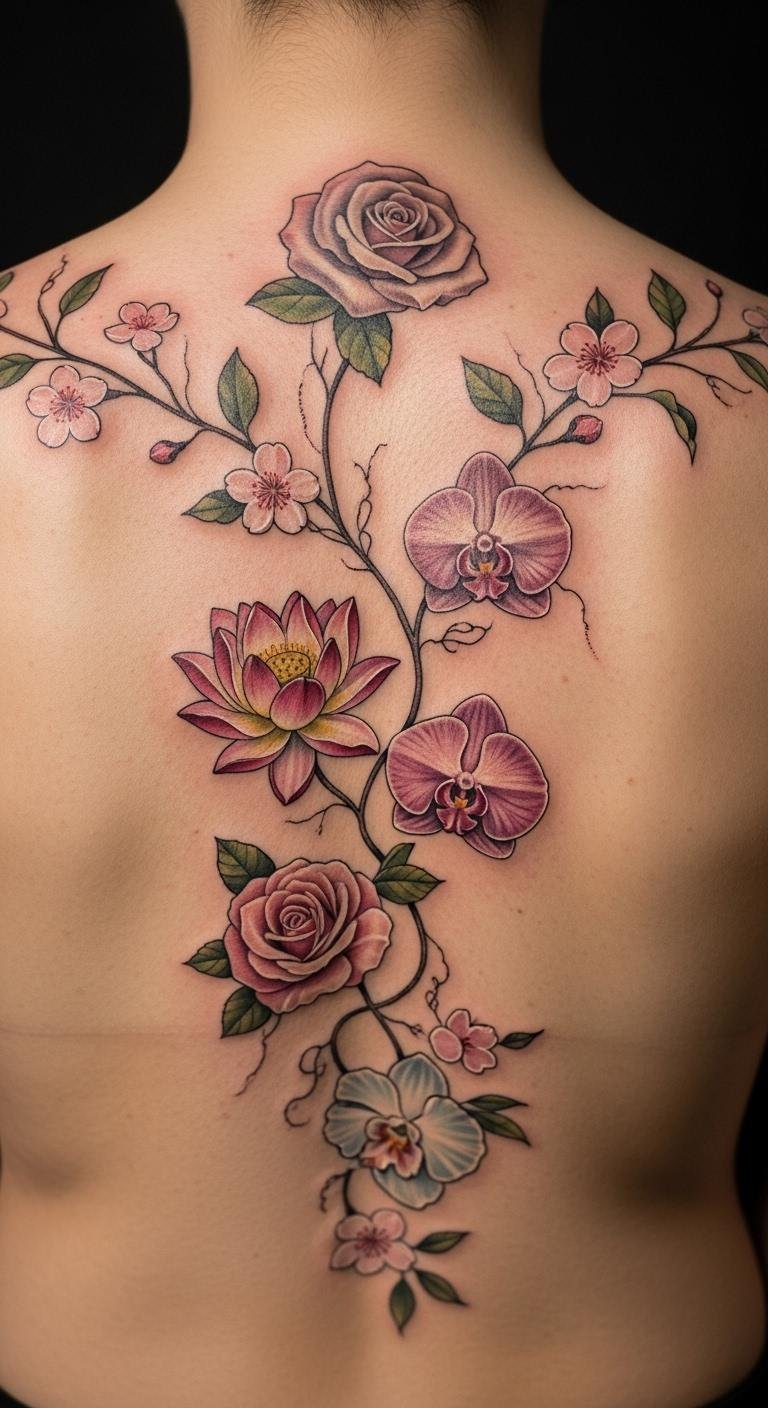 7. Mixed Flower Vine on the Back