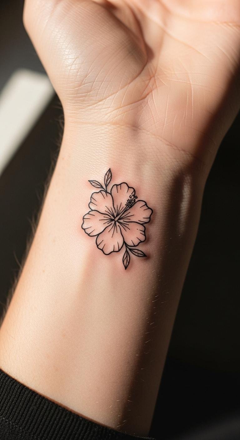 Think simple lines for a wrist tattoo that says a lot with little. A minimalist hibiscus keeps things clean and easy to hide at work. Start by sketching ideas on paper with a basic pen. Use free online tattoo apps to try designs on your photo. Pick a local artist who does fine line work; sessions often cost less than $100. Add a personal twist, like a tiny dot for a date. Keep aftercare straightforward—clean with soap and cover from sun. This style fits busy days and lets you show off at the beach. Try drawing it on with henna first to test the look. Go for black ink to save on colors. You’ll love how it feels fresh and not overwhelming.