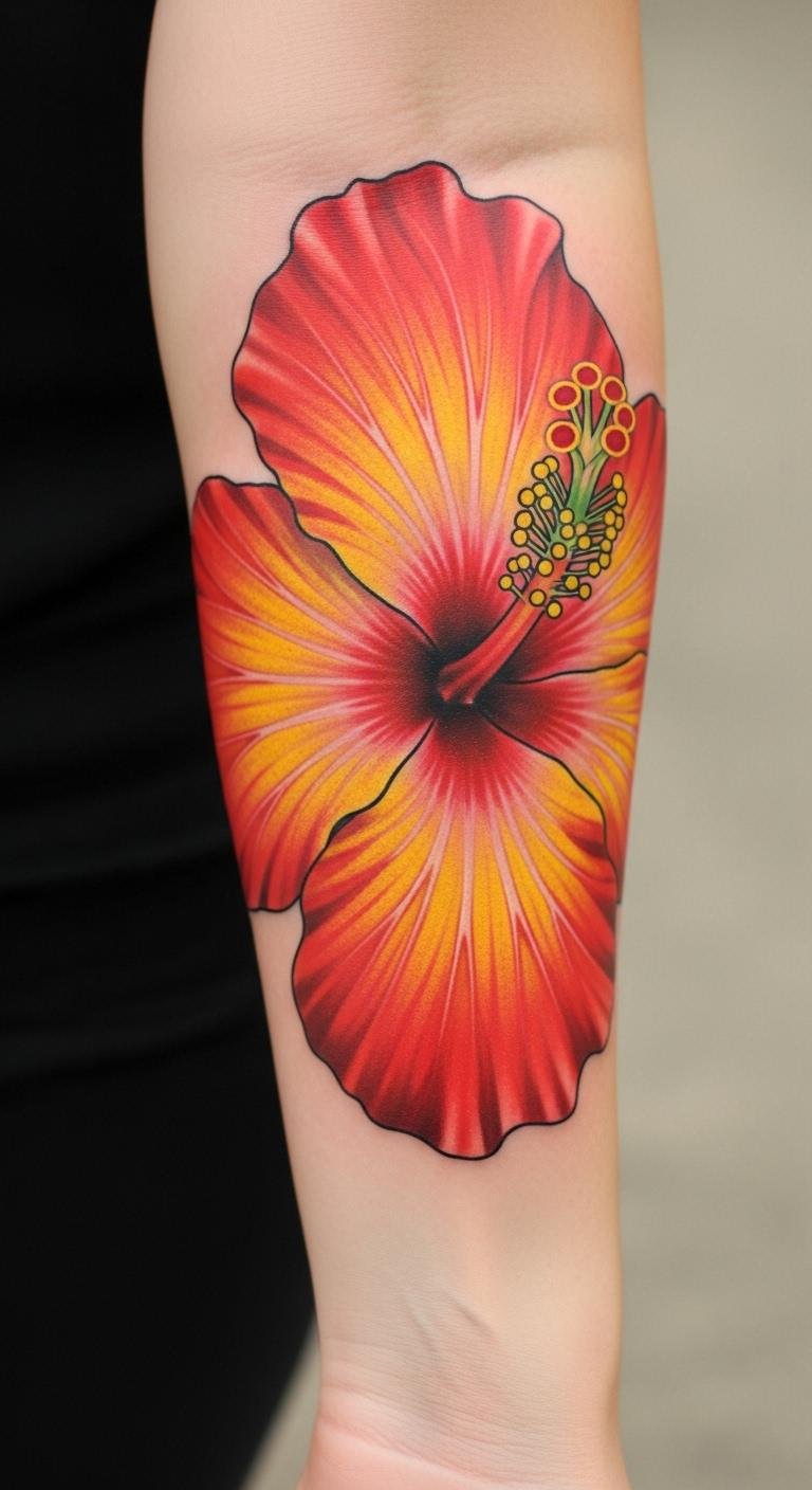 Cultural Hibiscus Forearm Tattoo