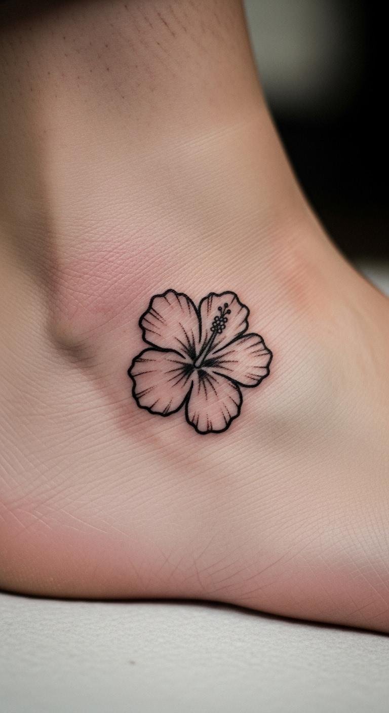 Feminine Hibiscus Ankle Tattoo