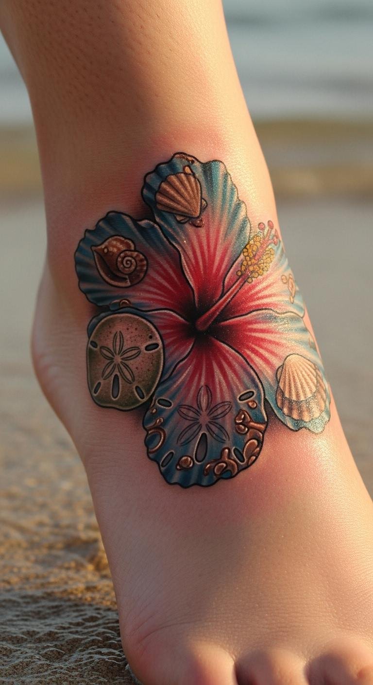 Beach-Themed Hibiscus Tattoo