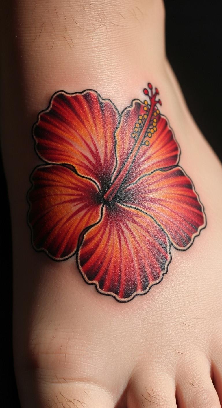 A hibiscus on your foot adds a playful step. Choose fun colors. Trace with foot templates. Find foot-friendly pros. Add personal icons. Try with foot stickers. Show in open shoes. Keep feet clean. It walks with you easily.