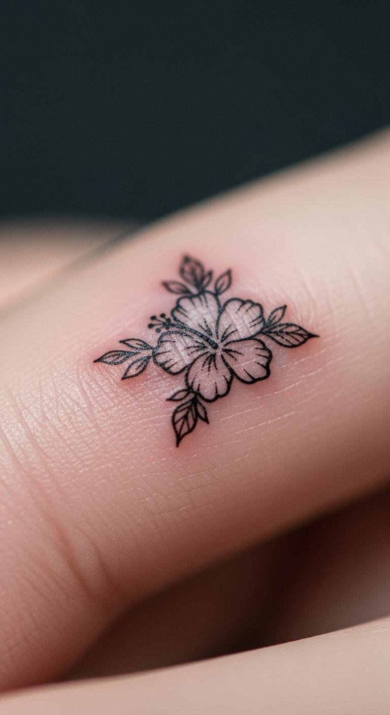 Small Hibiscus Finger Tattoo