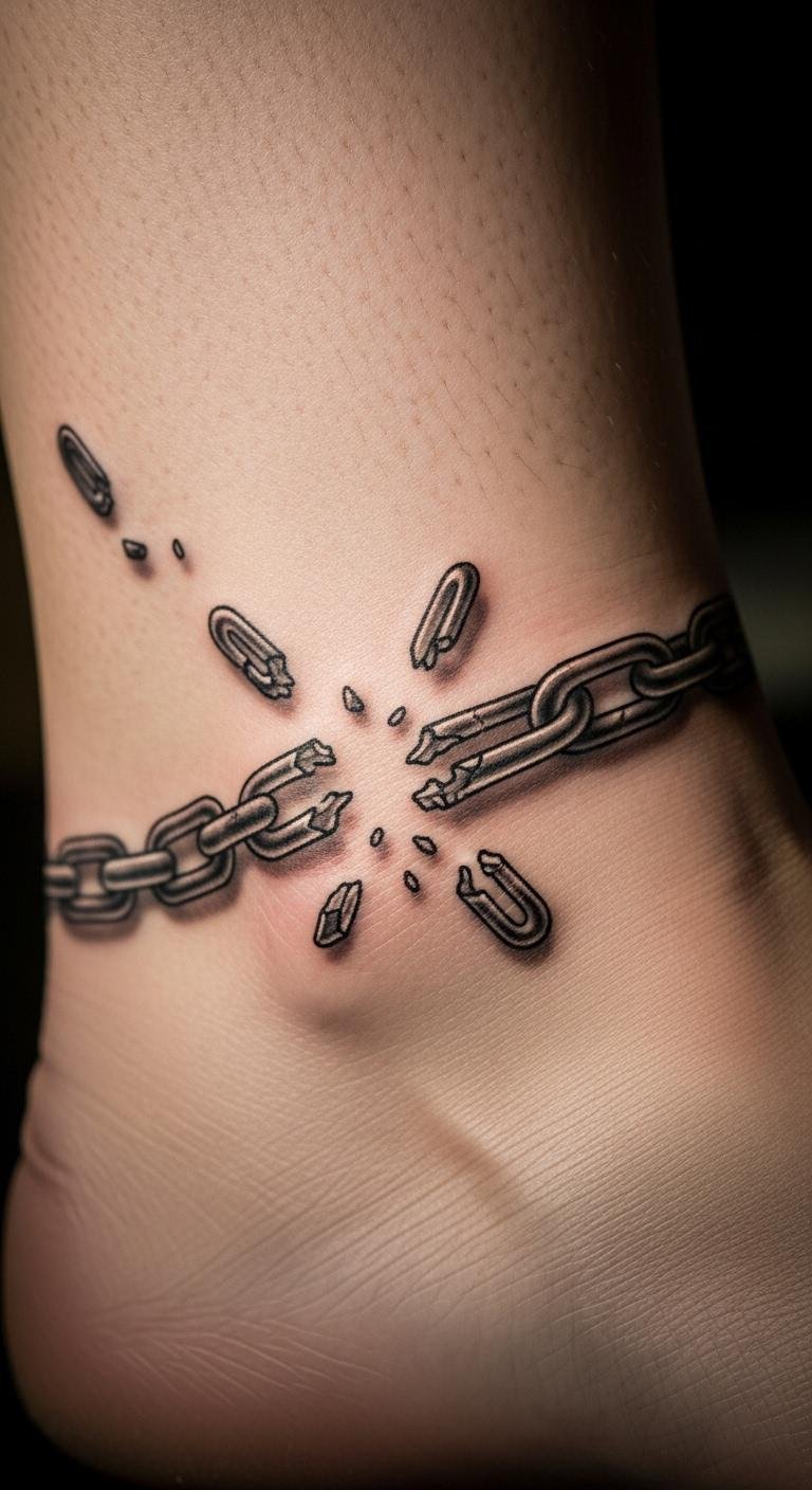 Broken chains mean letting go of limits. See it as your break-free badge. Draw a quick version on your skin with washable markers to see how it looks—grab one for under $5 at a store. For DIY practice, use temporary tattoo paper from online shops; it sticks for days and washes off easy. Pick a spot like your wrist for something small. Work with an artist to adjust the links for your story. Go for basic lines to keep costs down. Add elements like a key for more meaning. This idea works well for first-timers. Simple tools at home help you experiment without pressure.