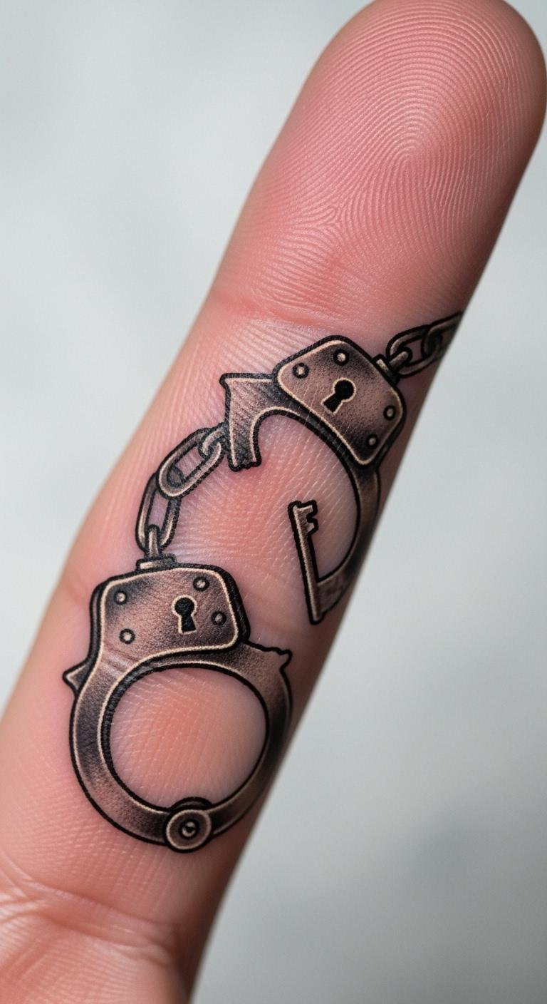 Handcuffs unlocked show breaking bonds. See it as your key moment. Trace with thread at home. Cheap fake tattoos offer a peek. Wear it on a finger for subtlety. Tweak with an artist simply. Metal shades keep it cheap. Add a key. This one clicks into place. Home ideas speed things up.