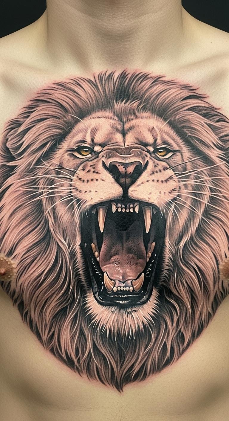 Lion roaring wild shows fierce independence. Consider it your roar of power. Draw lions on paper. Inexpensive lion tattoos for try. Put on your chest for pride. Work with an artist on face. Mane lines cut costs. Add eyes. This one growls strong. Home prep awakens it.