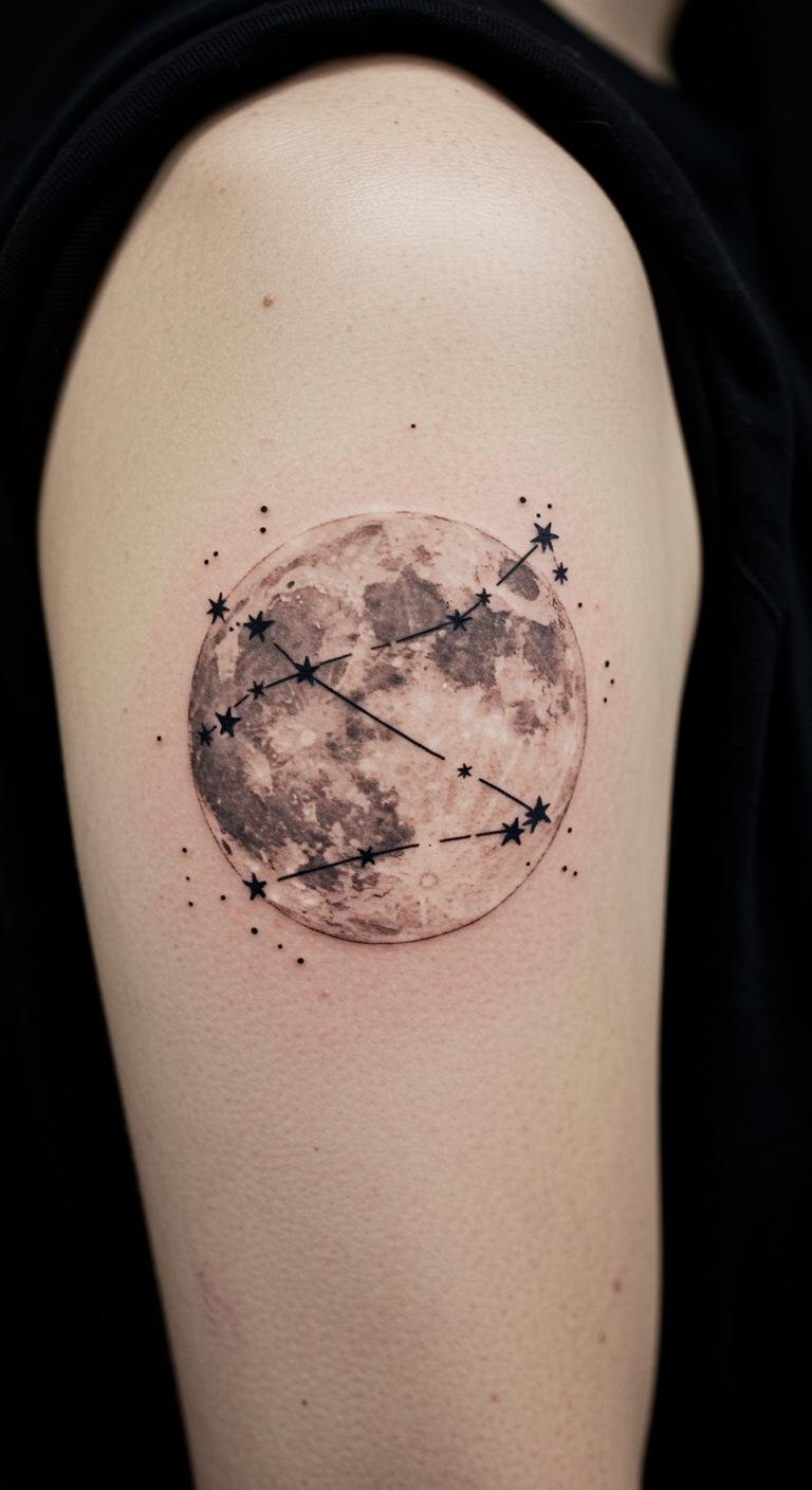 Match your zodiac with a constellation moon. It’s all about you. Upper arm is visible. Book for $190. DIY with constellation apps on your phone—free tools. Draw your sign around the moon. Connect dots carefully. This makes it unique. Use star stickers for planning. Constellations tell your story.