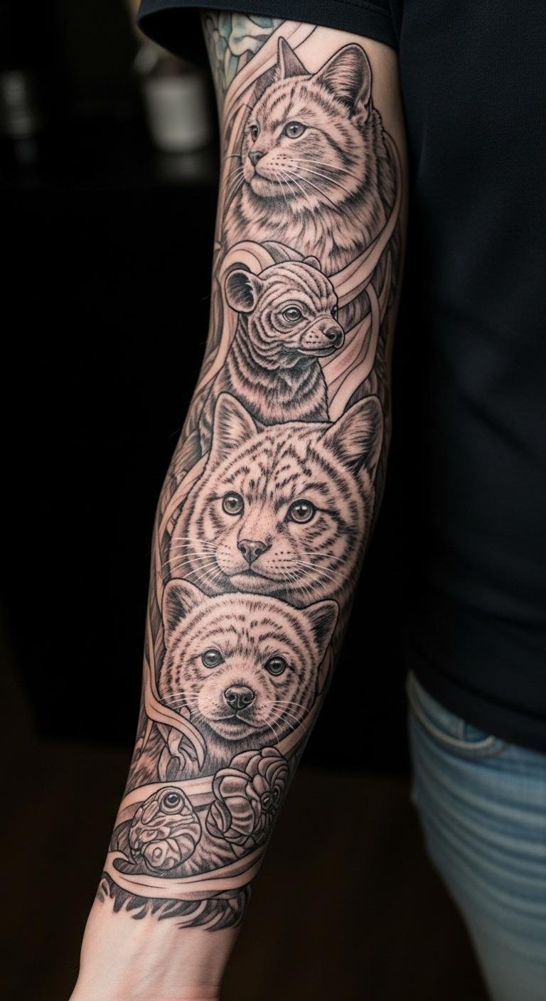 Pick two or three animals that matter to you. Place them along your arm for flow. Budget tip: Buy animal stickers for $2 to test. Artists run about $120 an hour, so space out appointments.